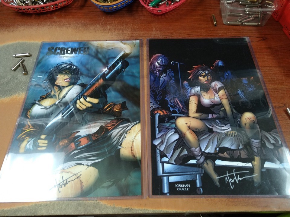 Lot of 2 TYLER KIRKHAM 11x17 Signed Prints "SCREWED" Zenoscope Oracle