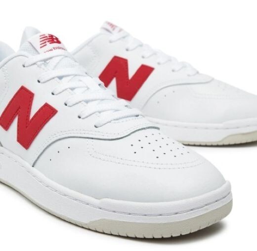 Add a touch of class to your athleisure look with these men?s New Balance BB80 white/red court shoes. Made of synthetic and high quality leather upper, these basketball-inspired sneakers have breathable perforations on the toe box and sides. Synthetic lining and footbed cradle your feet all day long. Rubber midsole and non-marking synthetic outsole offer amazing support and grip.