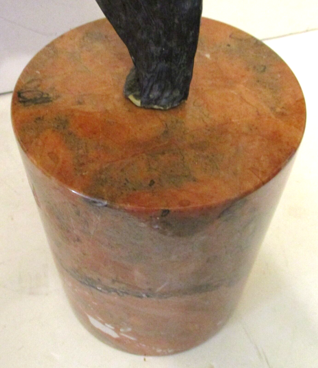 The marble pedestal measures 8" tall and has a 6 1/2" diameter.