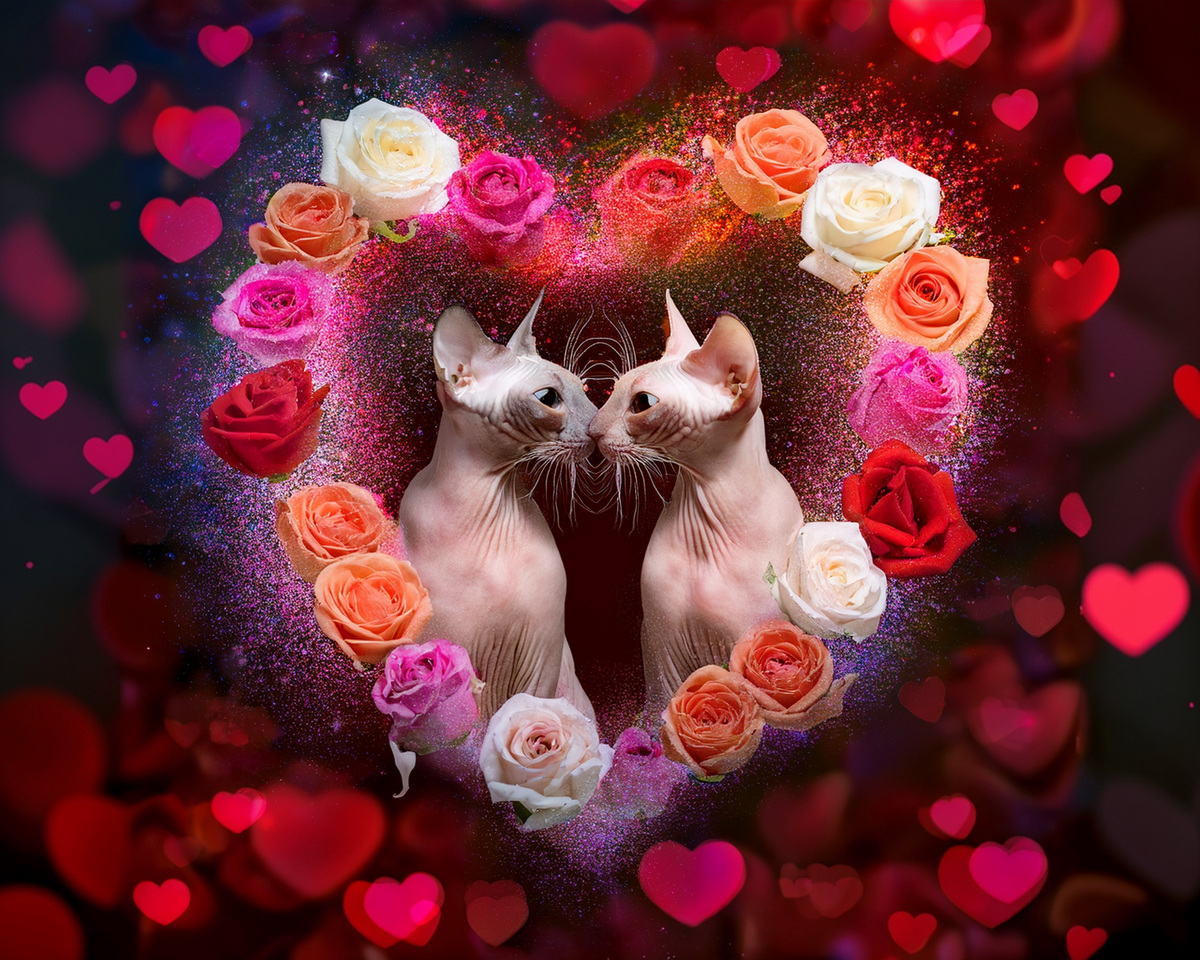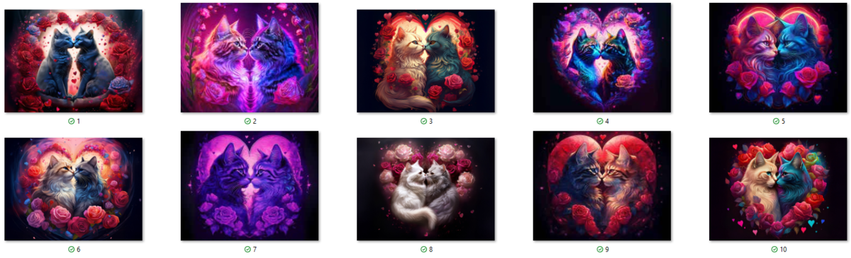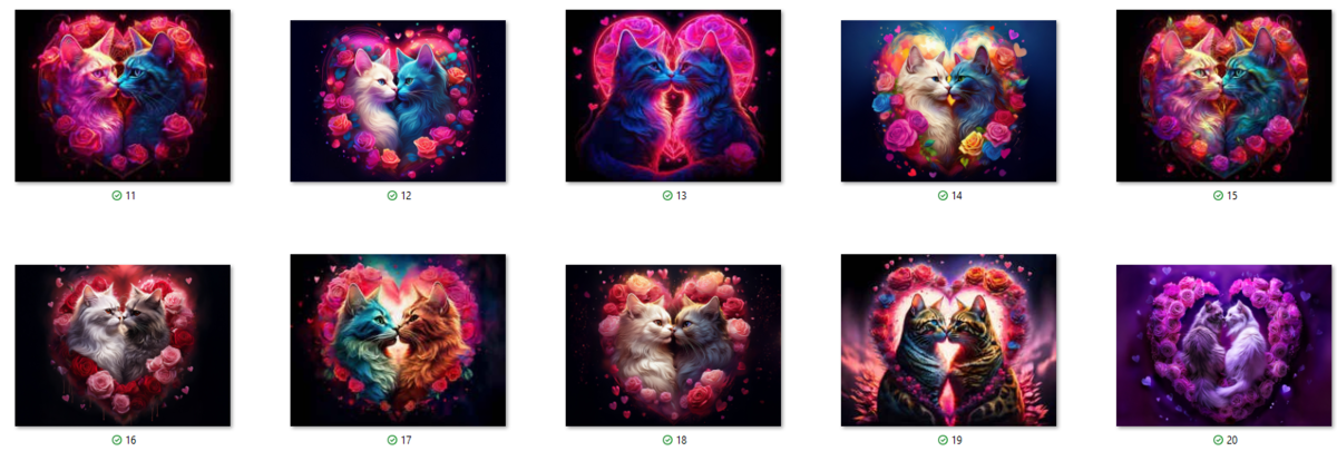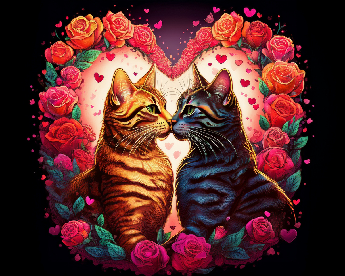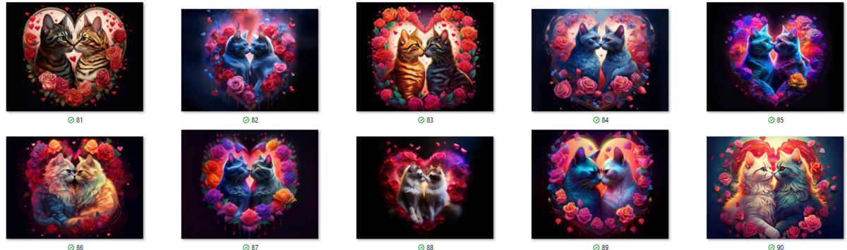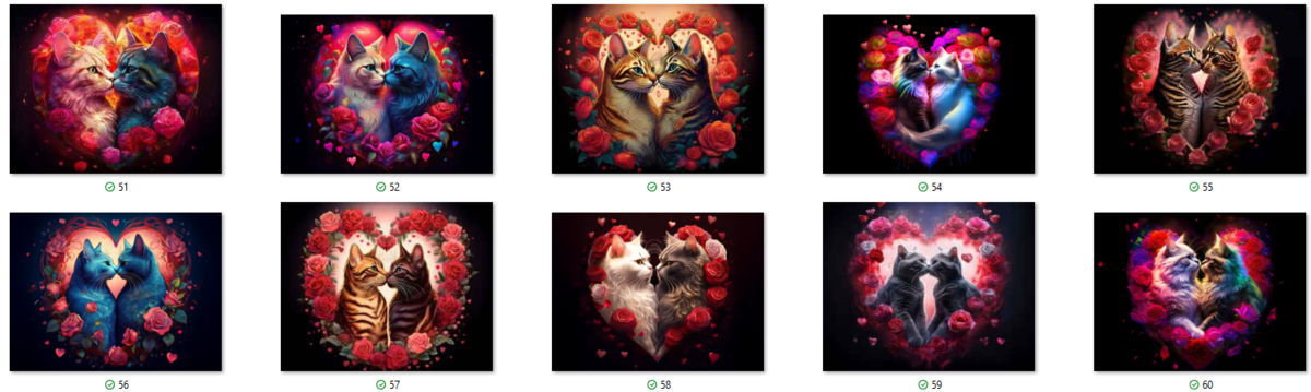 100 image bundle of Valentine cats featuring cute cat couples with roses and hearts.For commeercial use of physical products excluding transfers.