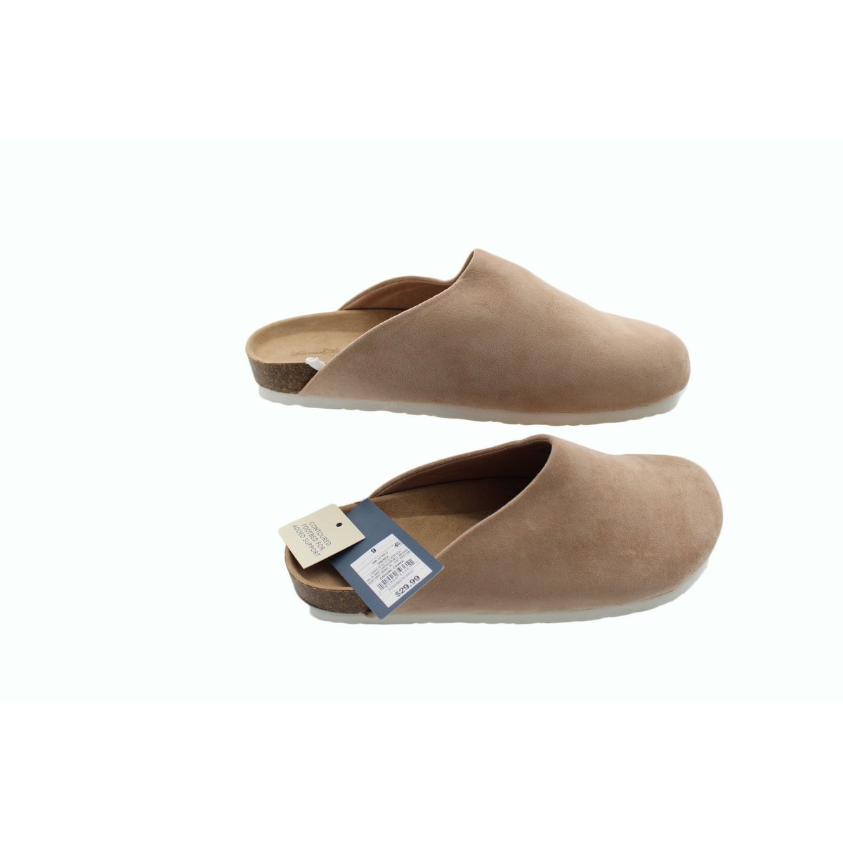 Step into effortless comfort and chic style with these Universal Thread slip-on clogs. The smooth tan suede upper wraps your foot in cozy luxury, while the natural cork footbed molds to your unique shape, offering unparalleled support with every step. The durable outsole provides reliable traction, making these clogs perfect for a relaxed day at home, a casual outing with friends, or a comfortable addition to your everyday wardrobe.