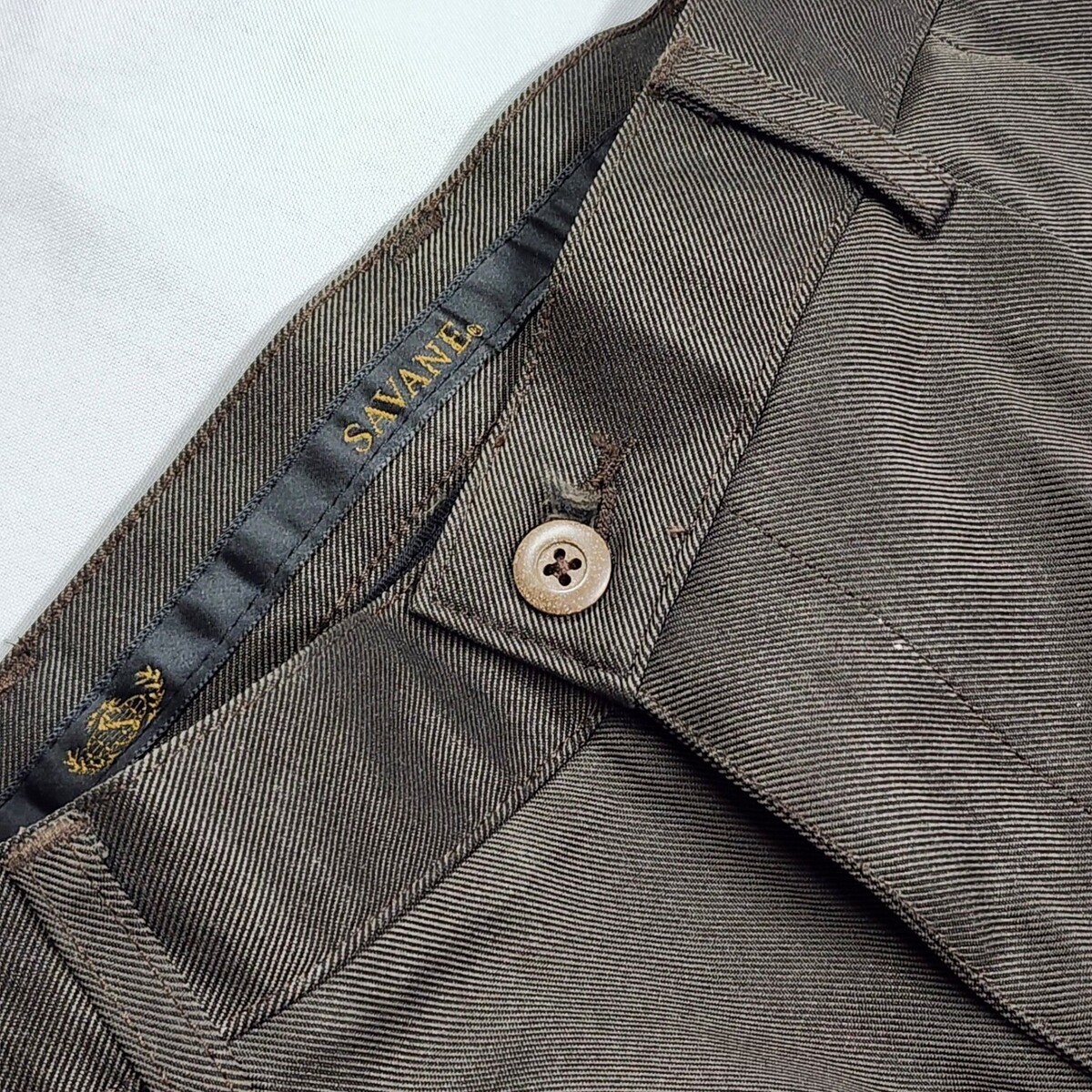 Keywords: Savane Pants, Men's Dress Pants, Brown Slacks, Polyester Blend, Pleated Trousers, Flat Front Pants, Business Casual, Office Attire, Classic Fit, Tailored Pants, Menswear, Formal Wear, Everyday Pants