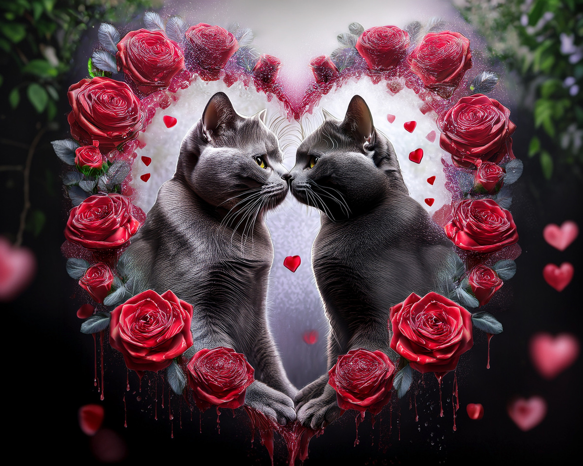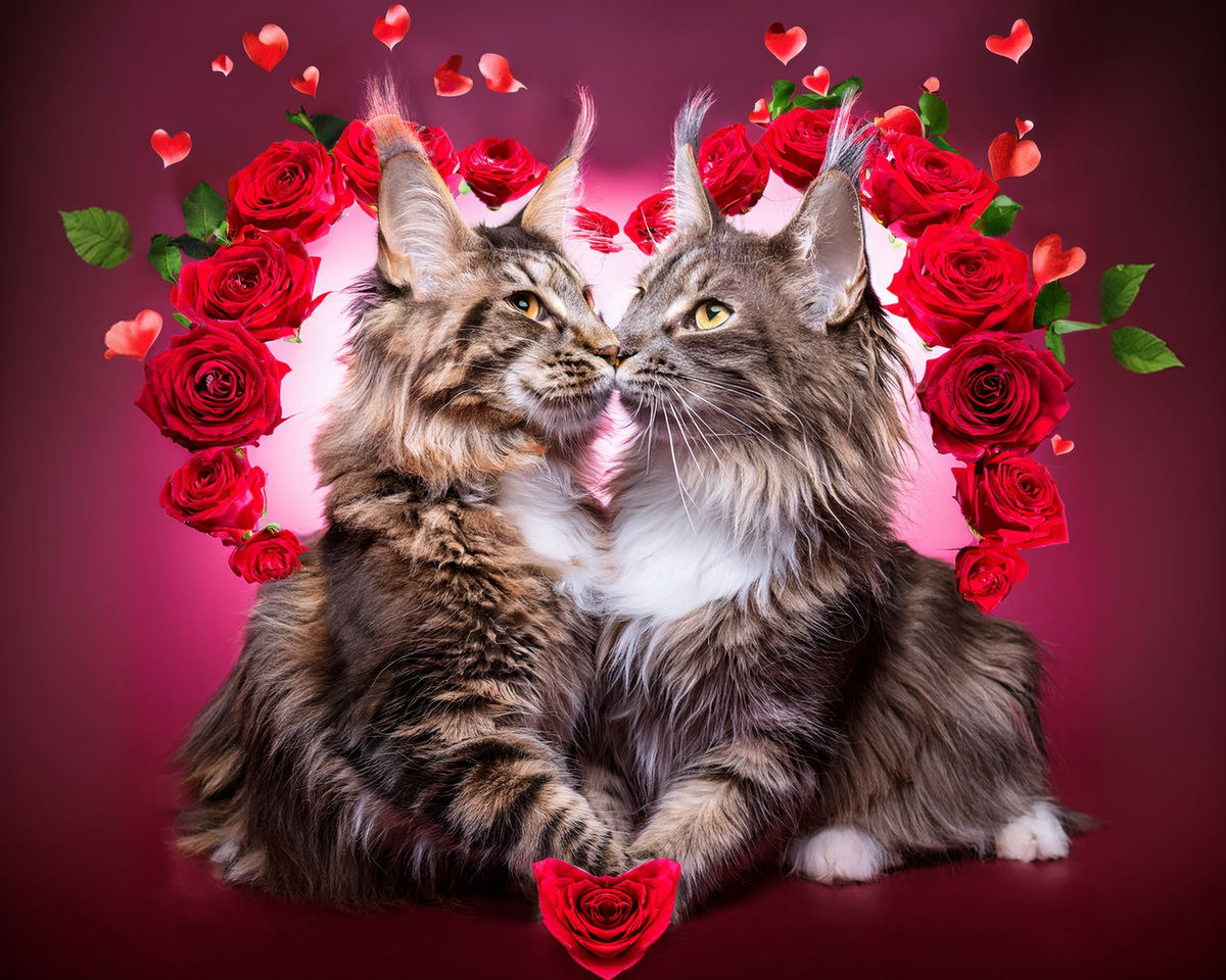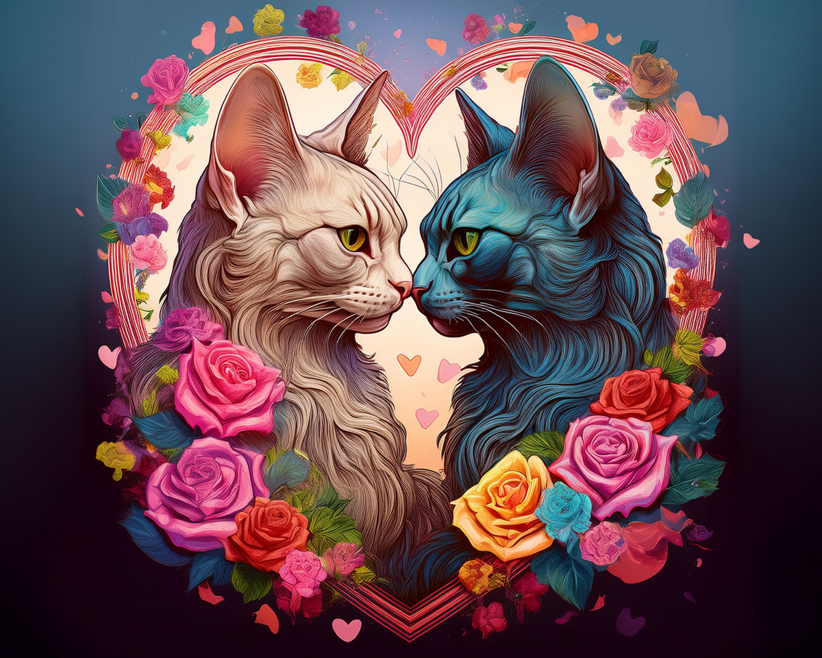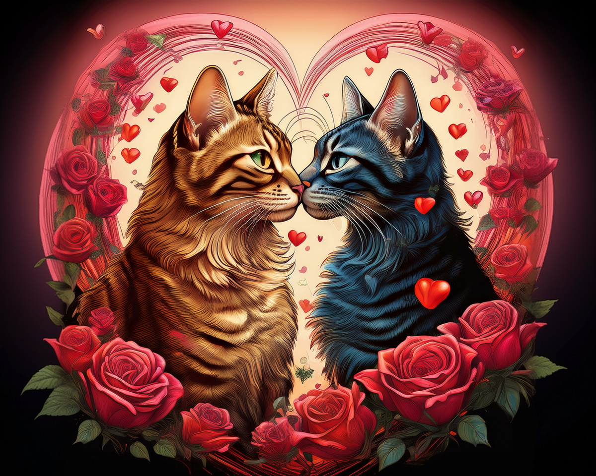100 image bundle of Valentine cats featuring cute cat couples with roses and hearts.For commeercial use of physical products excluding transfers.