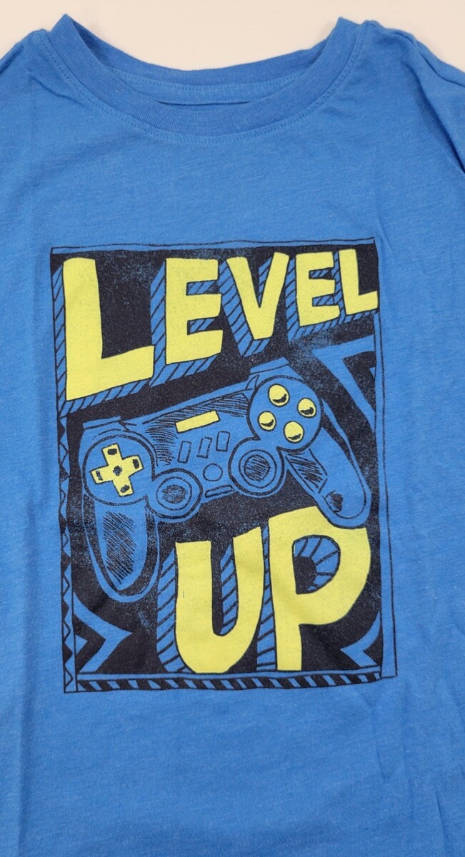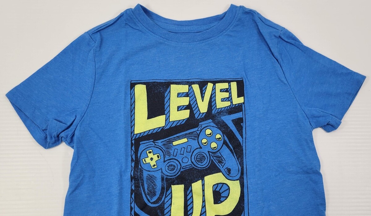 G) Cat & Jack Boys Video Game Remote Control Level Up Blue T-Shirt M(8)