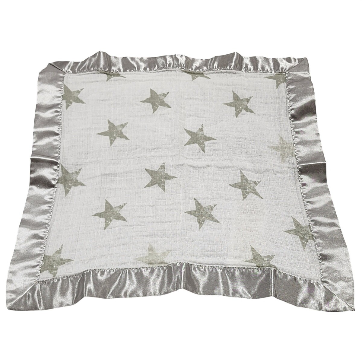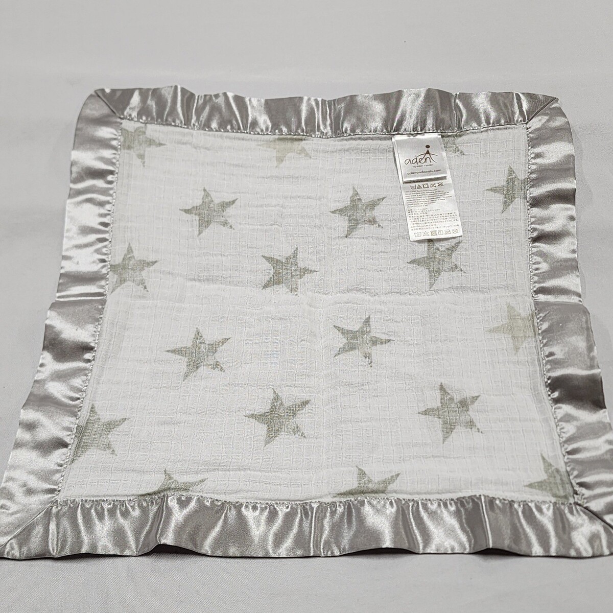 Aden & Anais White Muslin Gray Star Silver Satin Security Blanket/Lovey Issie