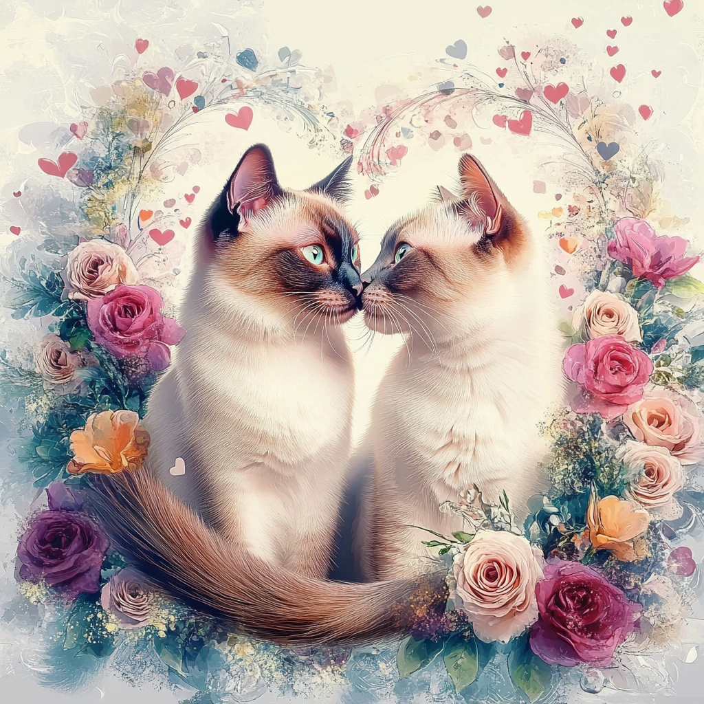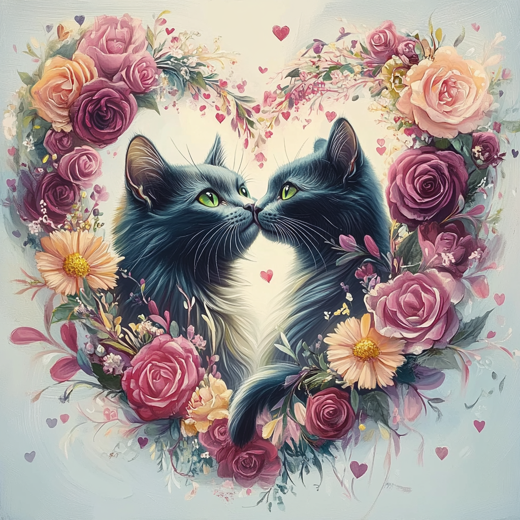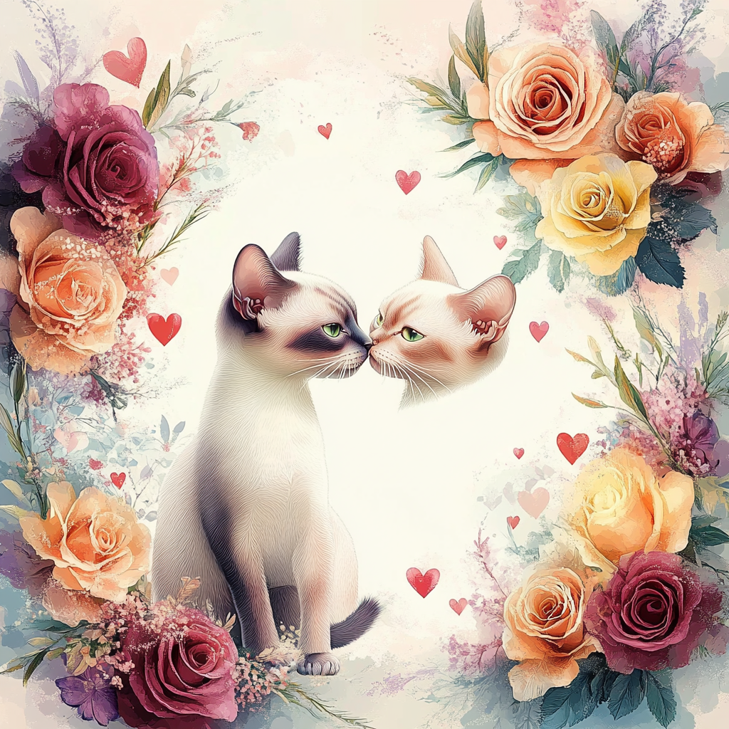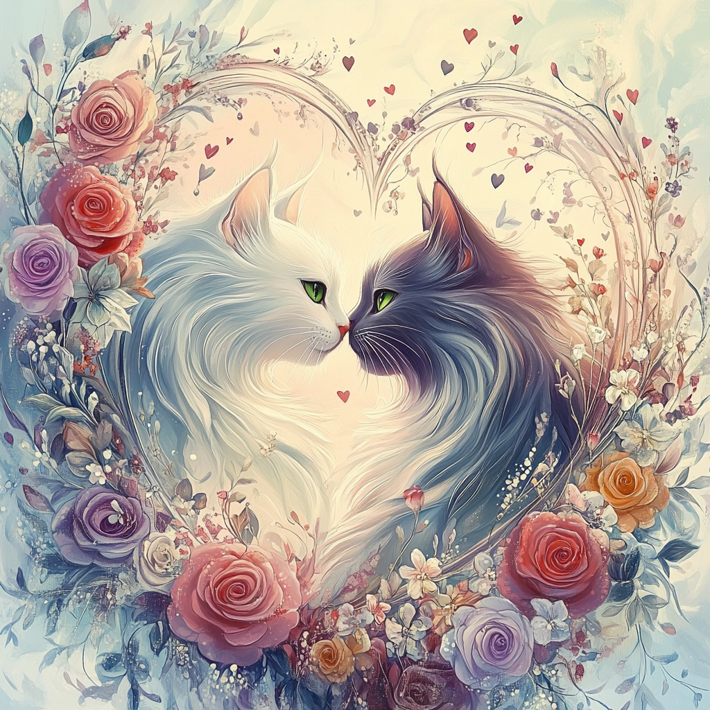 100 image bundle of Valentine cats featuring cute cat couples with roses and hearts.For commeercial use of physical products excluding transfers.