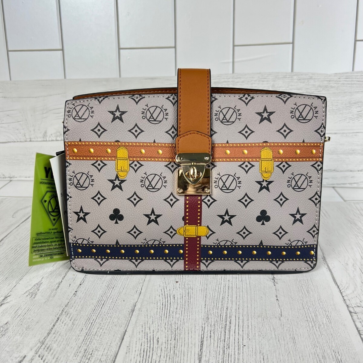 LANY Vegan Leather Crossbody Satchel Purse Handbag Grey Brown PETA Approved New
