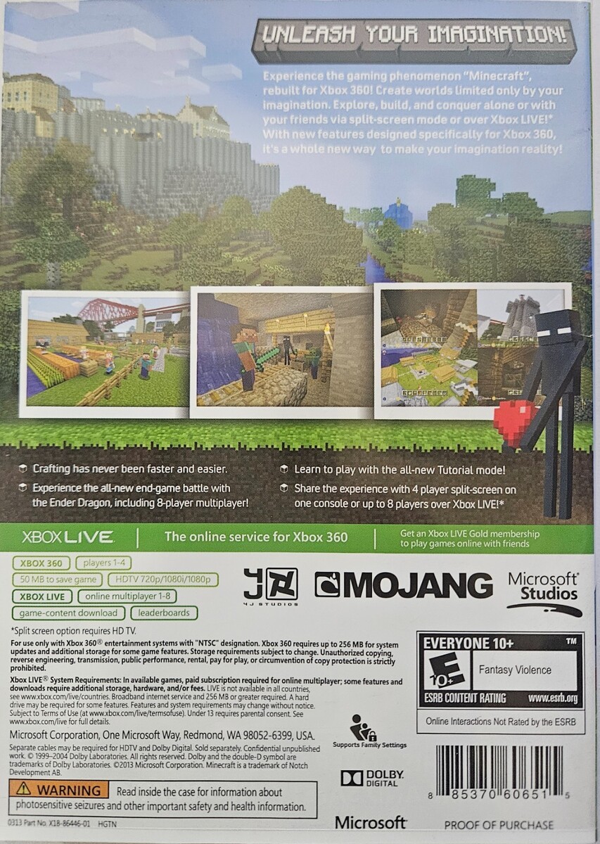 Minecraft Xbox 360 Edition (Microsoft Xbox 360, 2013) Perfect Condition
