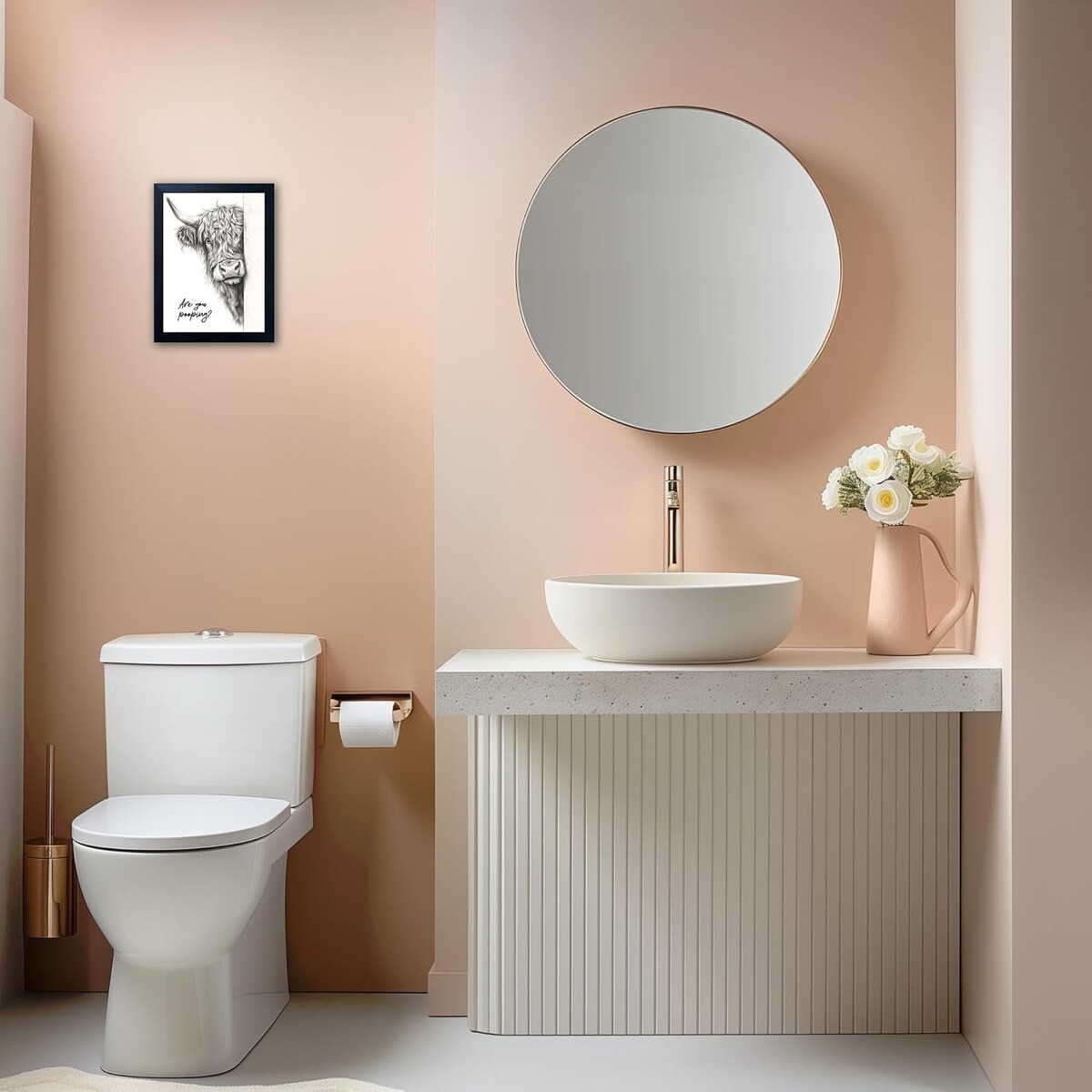 Funny Highland Cow Bathroom Wall Art Are You Pooping Rustic Farmhouse Scottish