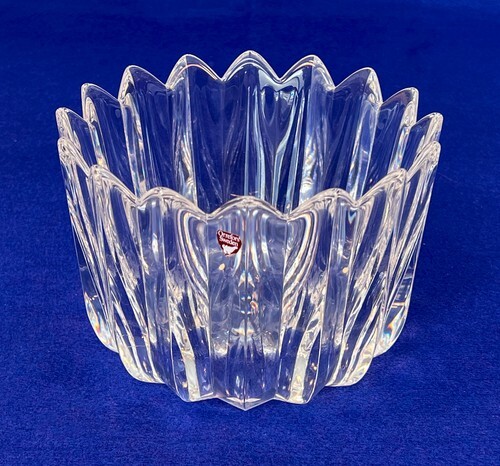 Orrefors Fleur Crystal Bowl 14 Point 6.25"W Sweden Label Signed JJ 4514-12 1970s