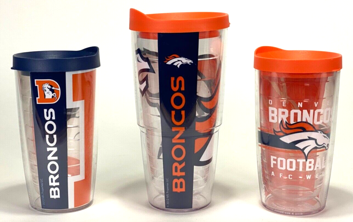 Lot of 3 Denver Broncos (24 & 16oz) Tervis Tumbler NFL Football Travel Cup Mugs