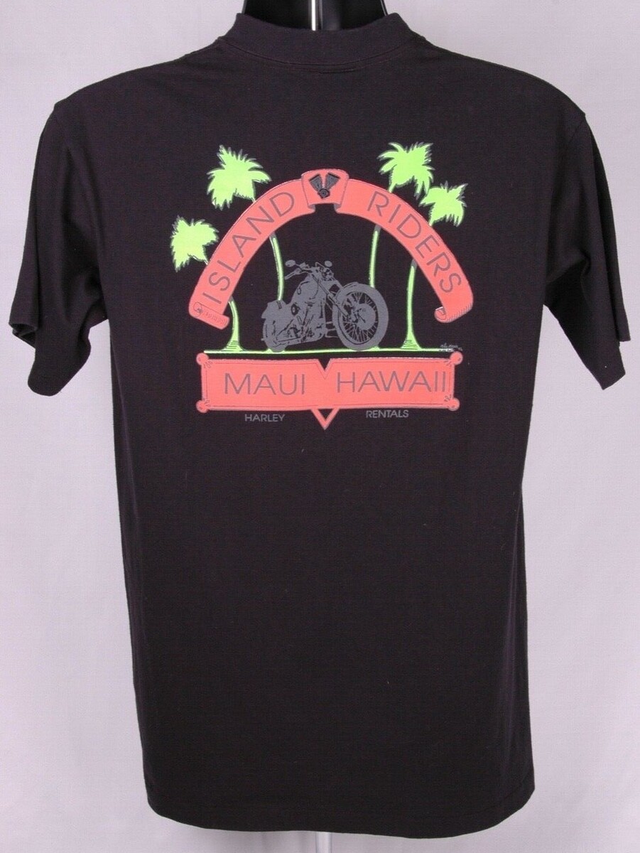 Harley Davidson T Shirt-Black-1990's-L-Motorcycle-90 Year-Island Riders Maui HI