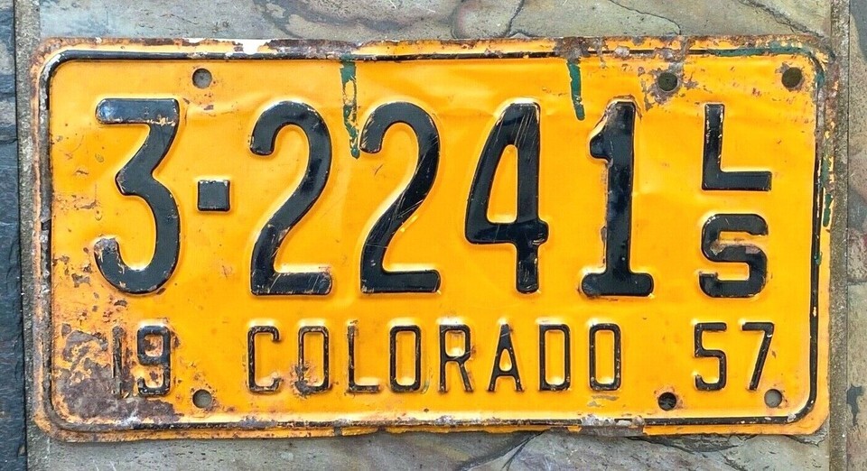 Vintage 1957 COLORADO License Plate - 3-2241 LS - Yellow Black