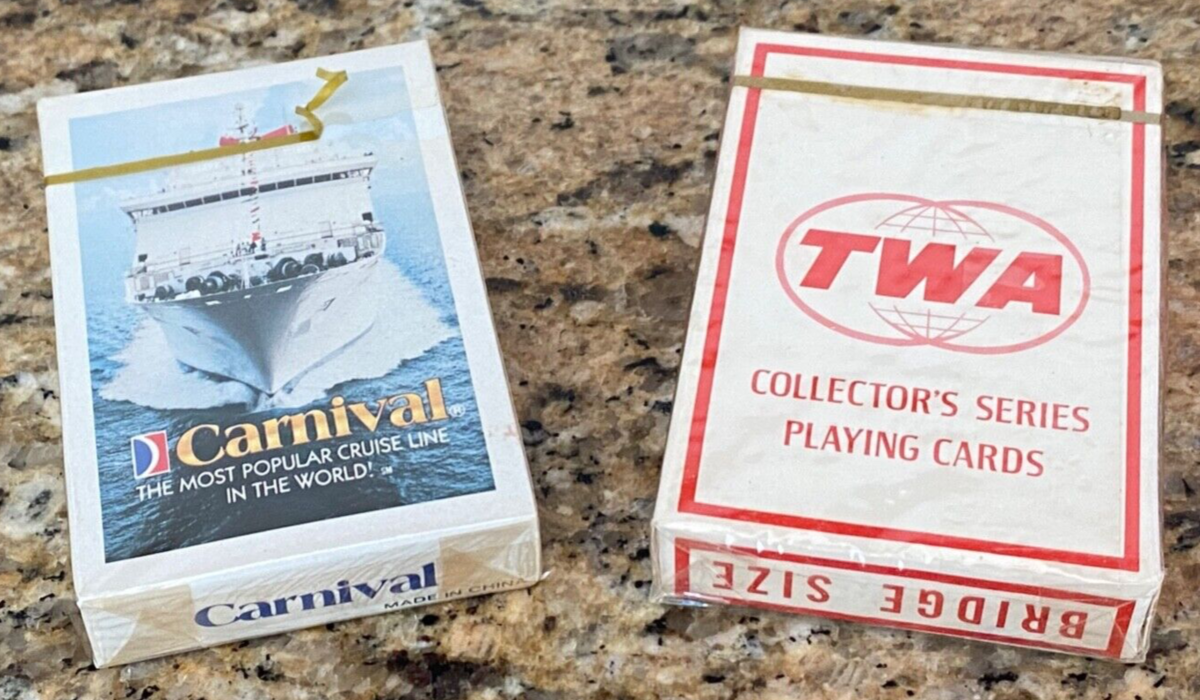 2 Decks Playing Cards - TWA Douglas DC-4 & Carnival Cruise Airlines - Vtg Sealed