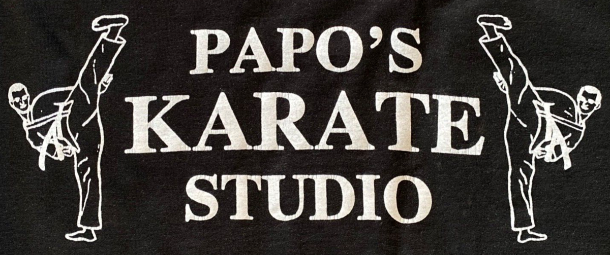 Vtg Papo's Karate Studio T Shirt-Black-Single Stitch Sleeve-XL-Martial Arts
