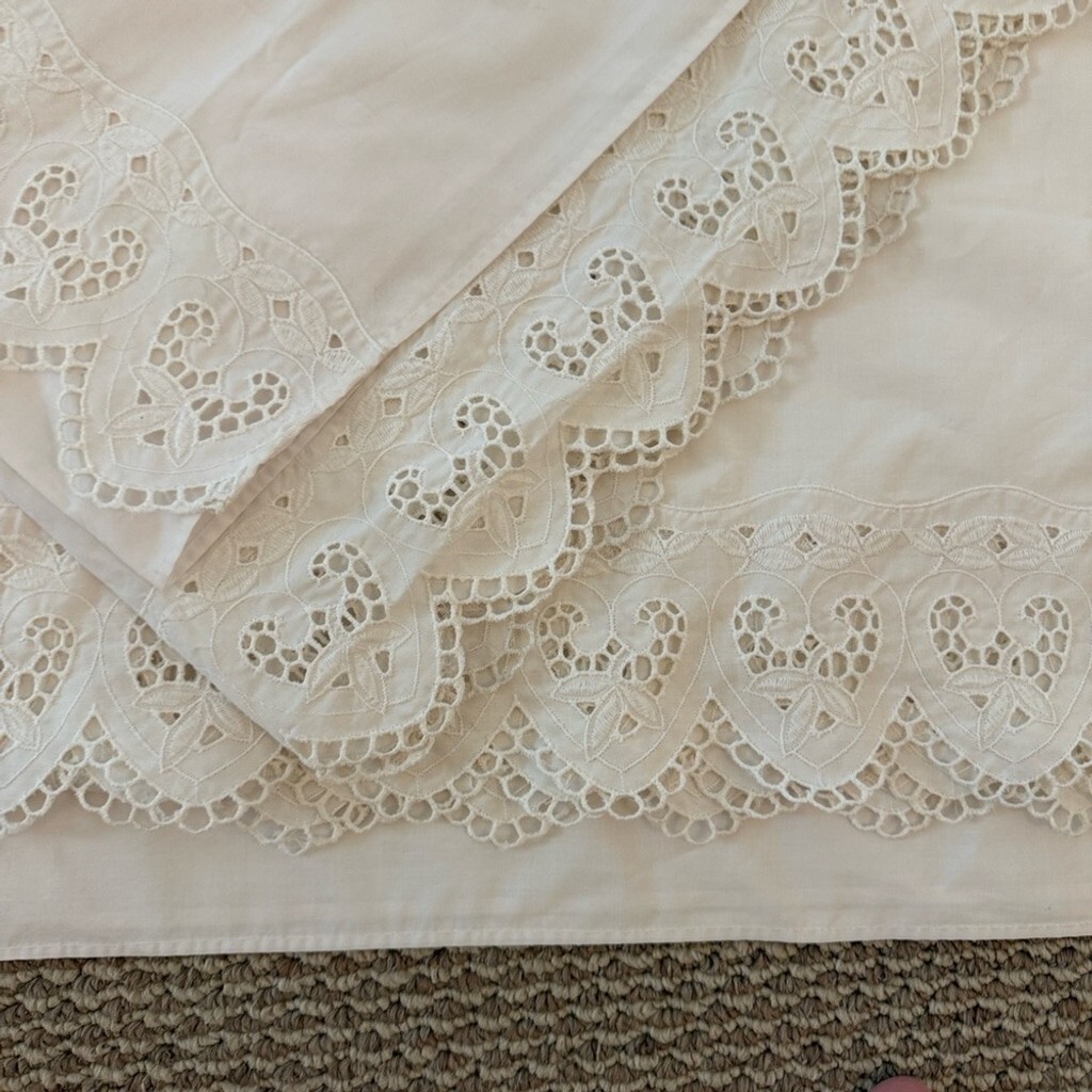 White Cotton Eyelet Window Curtains Scalloped Lace, Cotton Trim, Embroidered Lace Trim, Pure Cotton