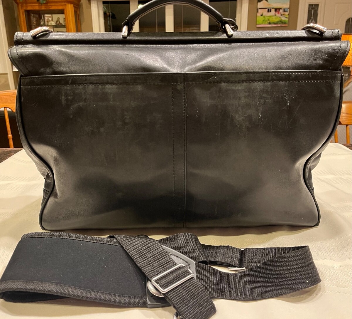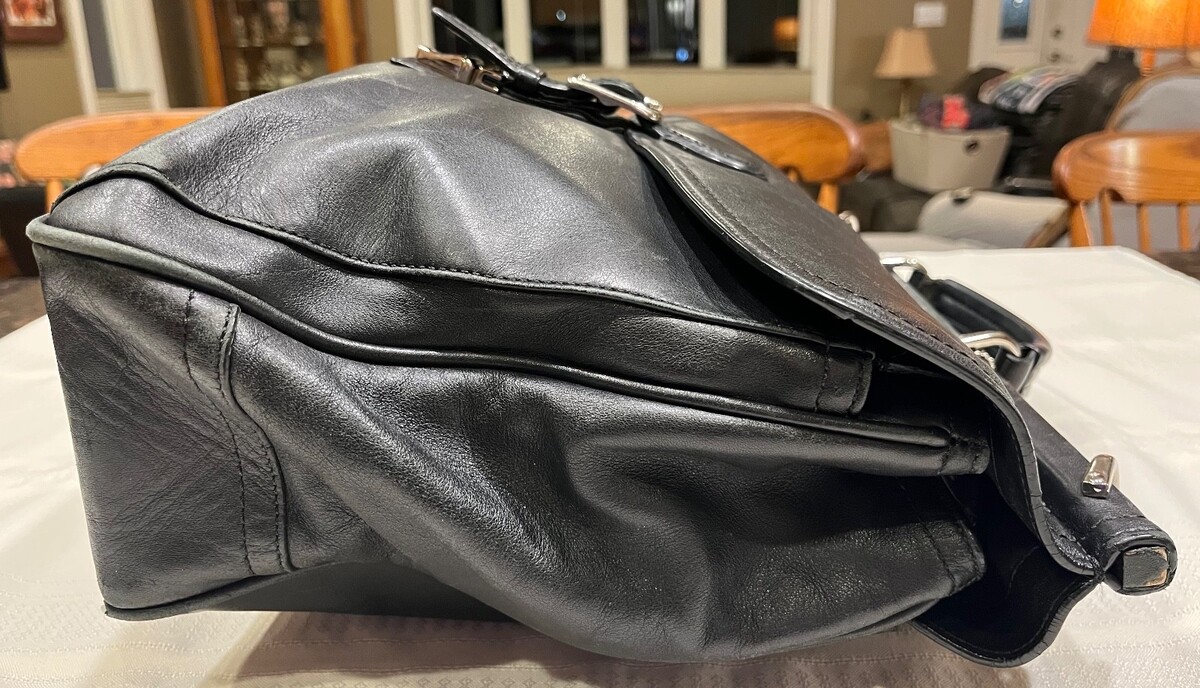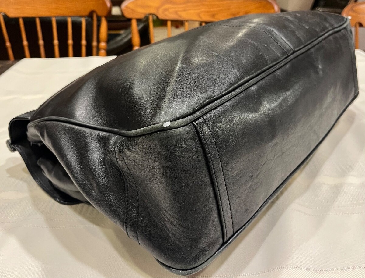 The bag is in good condition. Preowned and lovingly used, the briefcase is a workhorse!