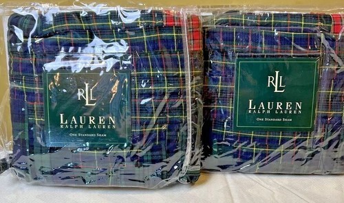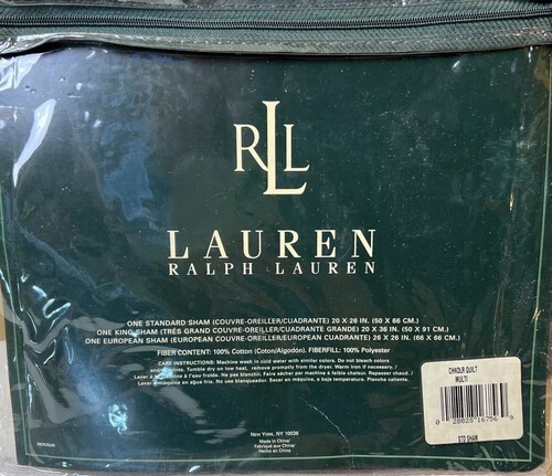 New Vintage Ralph Lauren Chandler Quilt Navy Multi Quilted Standard Pillow Shams