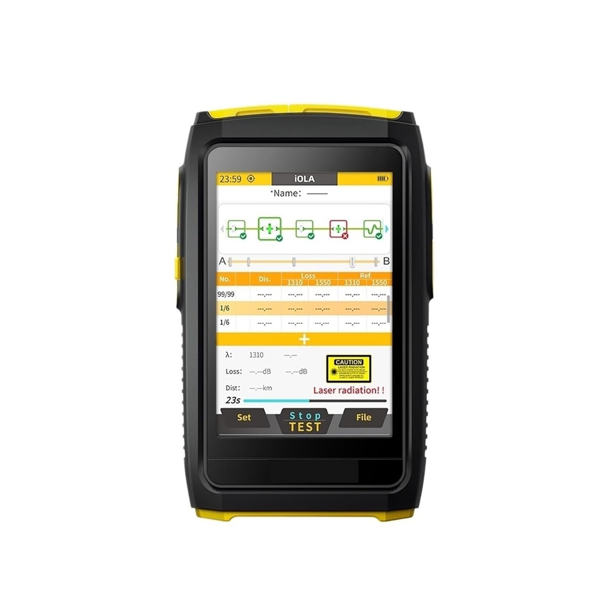 3. User-friendly touch screen interface: With its intuitive touch screen interface, operating the OFW OTDR FWT-100 is a breeze. You can easily navigate through different measurement modes, such as real time, average, and automatic, and adjust the pulse width and measurement time according to your specific test requirements.