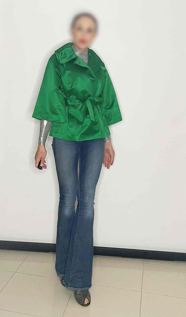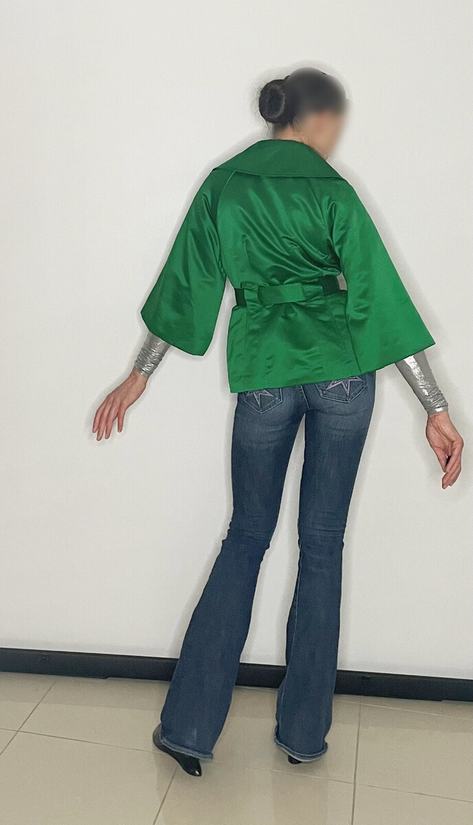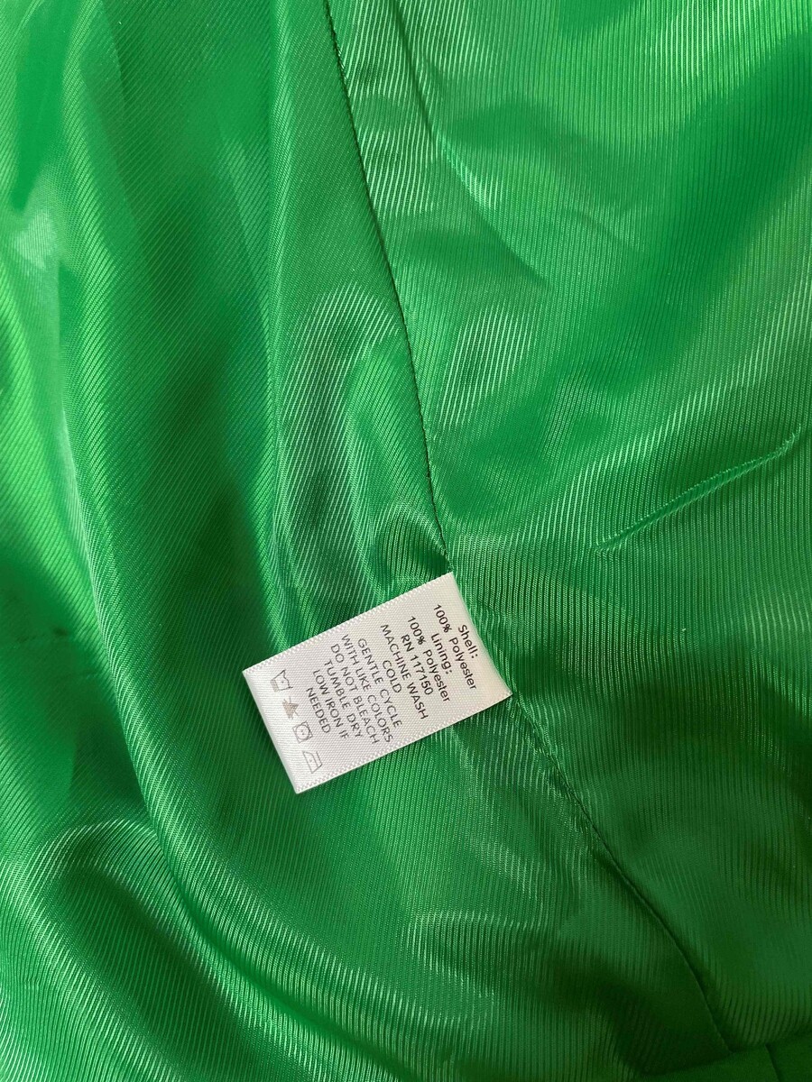 A gorgeous vivid emerald green belted jacket with 3/4 sleeves.