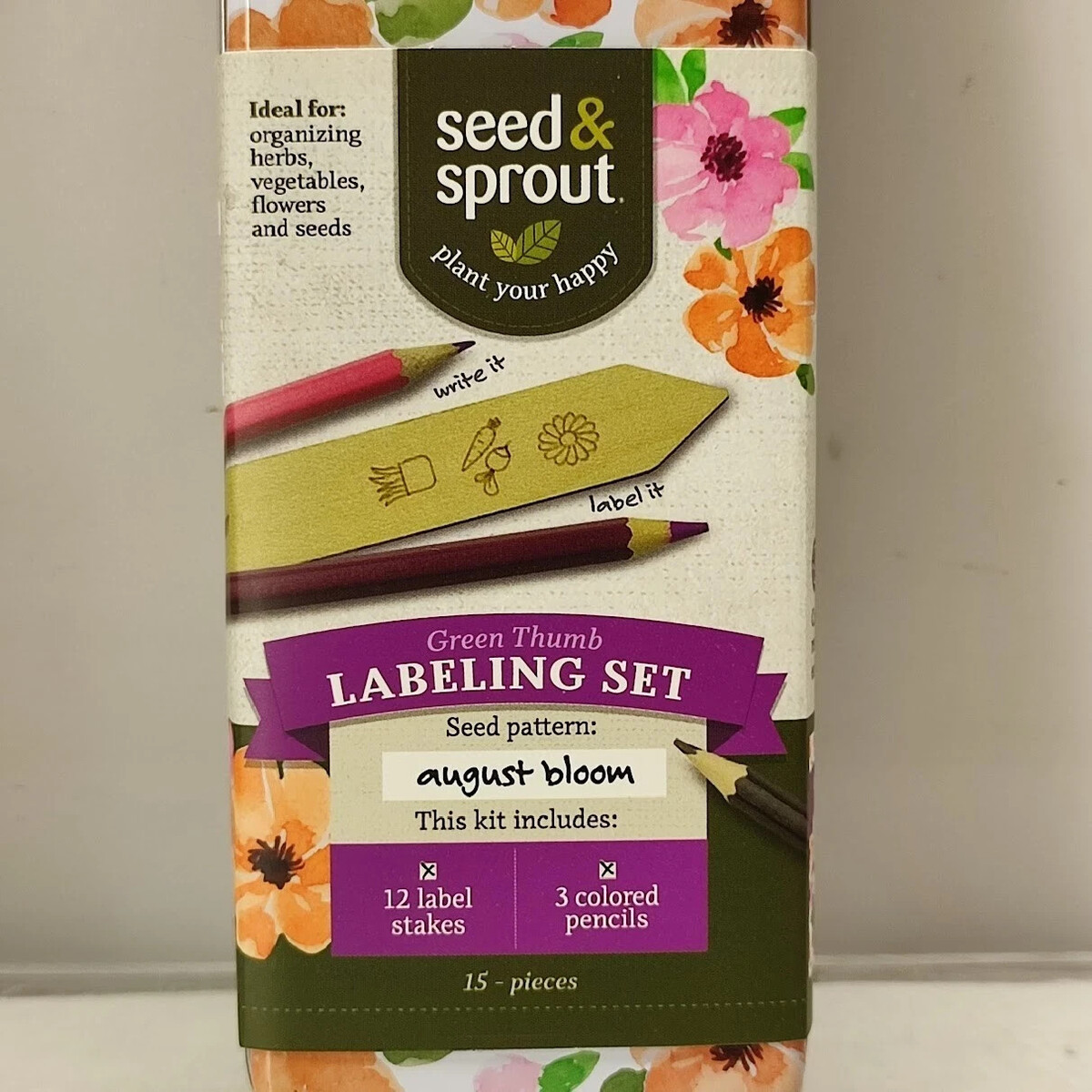 Seed & Sprout Labeling Set Gift Garden Plant Labels 12 Stakes + Colored Pencils