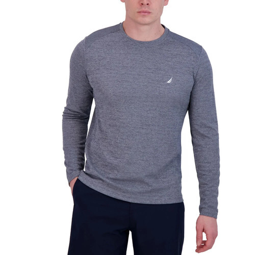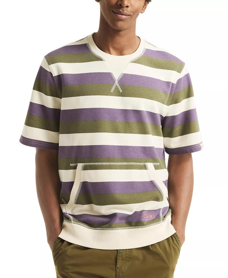 Made of French terry cotton-knit fabric, this striped crewneck T-shirt from Nautica is designed with a roomy kangaroo pocket and a ribbed trimperfect for your off-duty days.