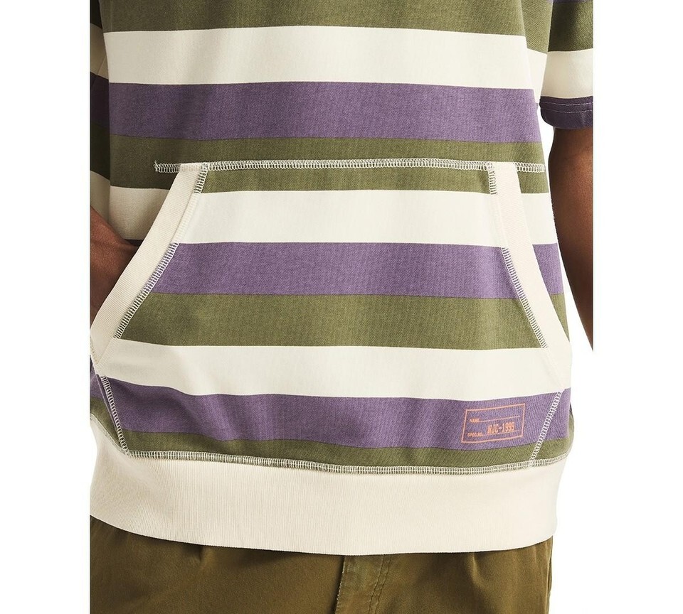 Nautica Crewneck Shirt Grape Size Large Mens Striped Kangaroo Pocket Classic Fit