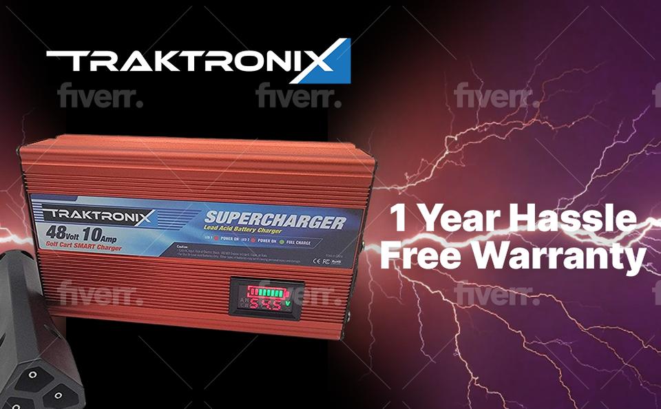 1 - New Traktronix brand RXV Battery Charger with digital display, Power Cord and Standard 3 pin RXV plug