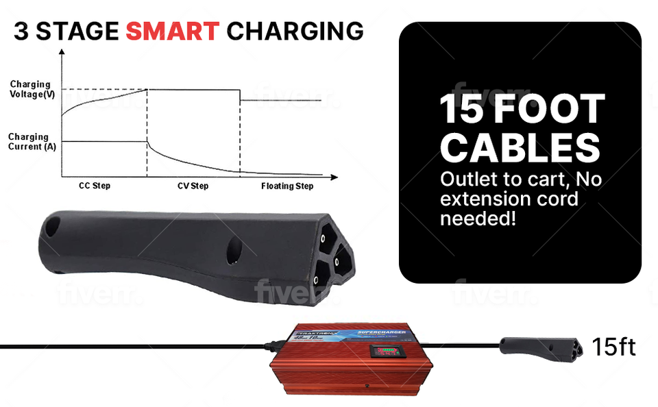 Works with all 48 volt battery systems that utilize the STD 3 PIN RXV PLUG: