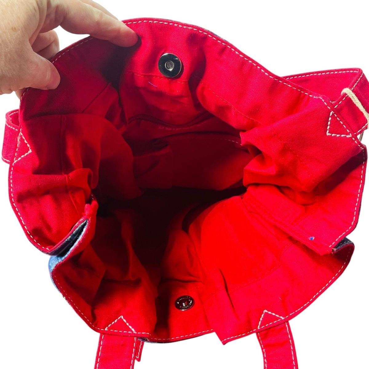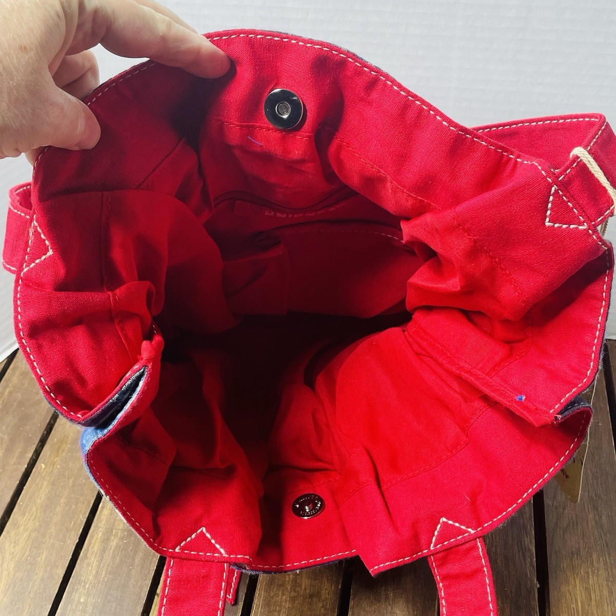 The bag is made of lightweight cotton knit fabric and features a red lining and organizer for added convenience. It's also lined with cotton and has a silver hardware material. Whether you're headed to school, running errands, or going on a casual outing, this satchel is a great choice.