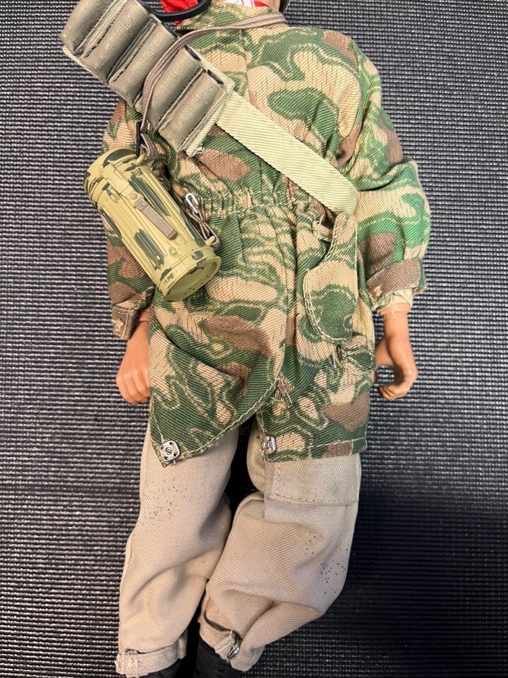 Uniform Details: Paratrooper gear, WWII German Fallschirmjager outfit (specify field jacket/camo if visible)