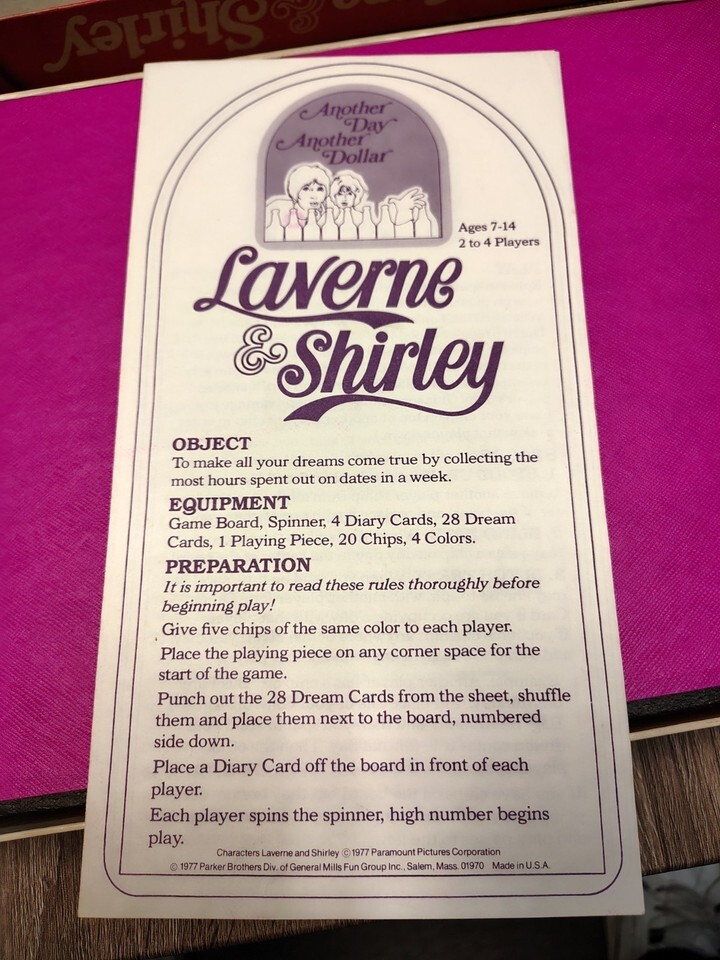 laverne shirley board game 1977 parker brothers complete game set