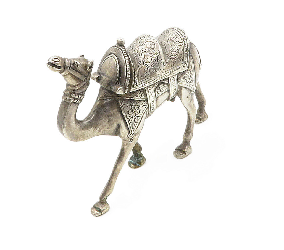 Authenticity Guarantee Silver Vintage Floral Etched Large Camel Statue Figur...