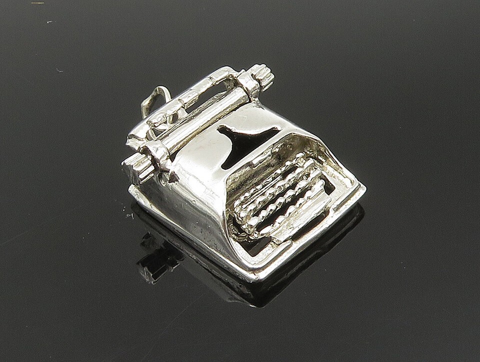 925 Sterling Silver Vintage Shiny Old Fashioned Typewriter Pendant PT19882