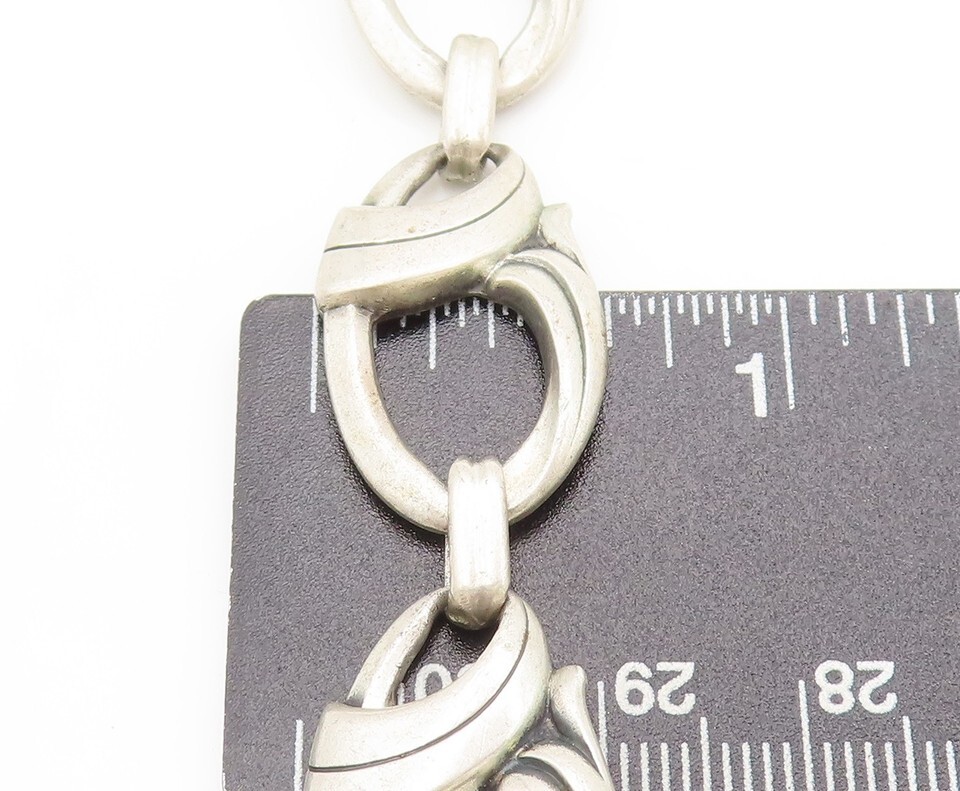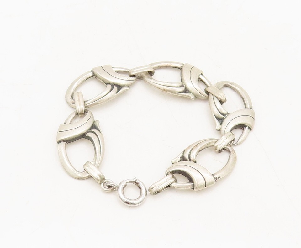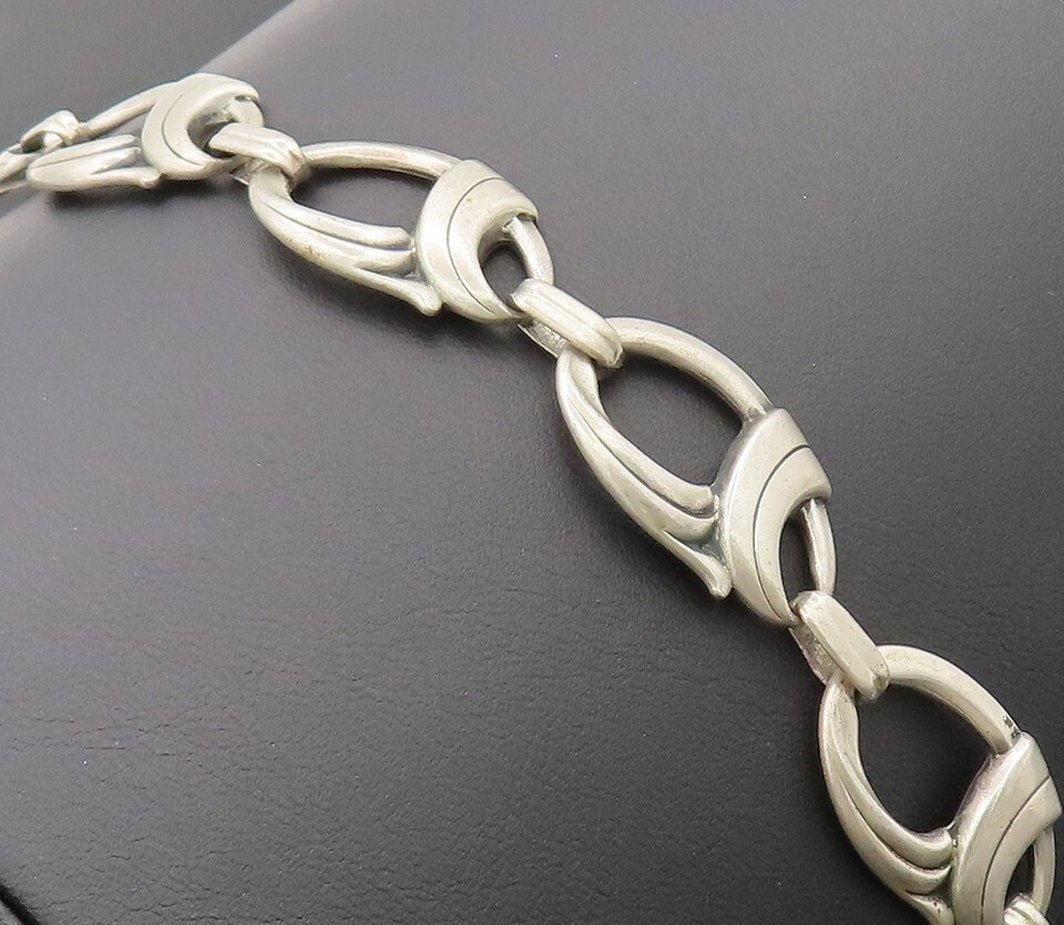 925 Sterling Silver Vintage Bracelet HARRY BICK Carved Double Loop Link BT10221