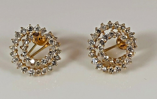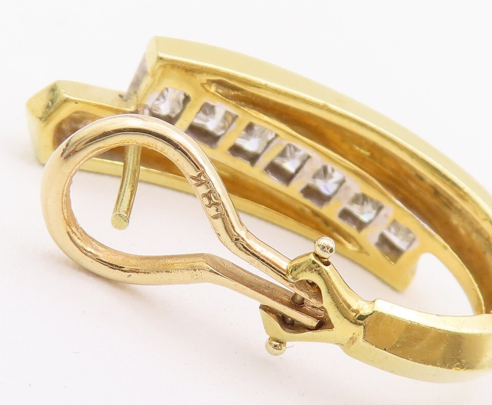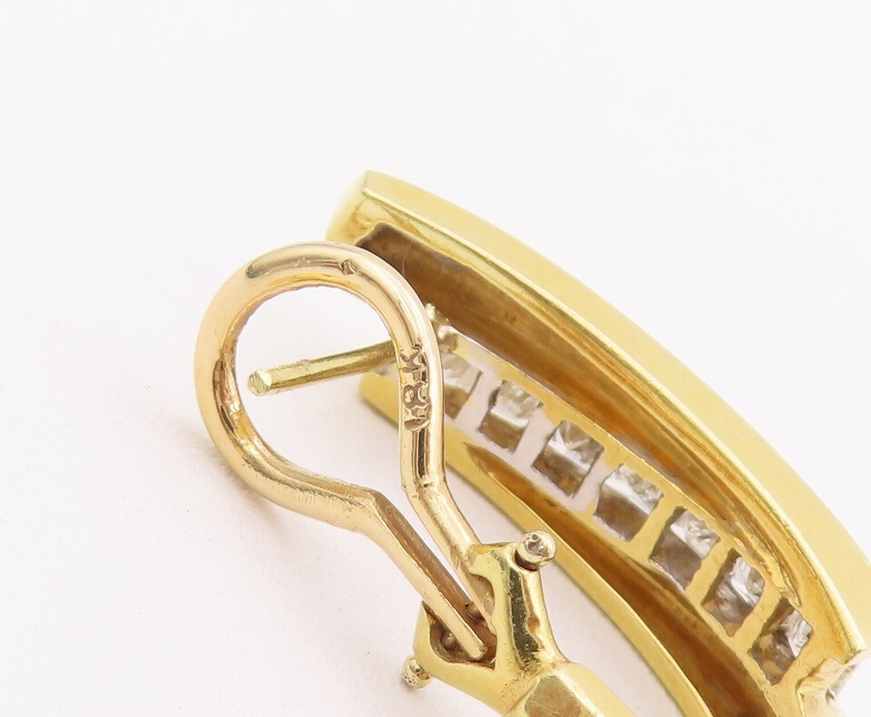 Authenticity Guarantee 18K GOLD Vintage Earrings 1/2 Ct Square Cut Real Diam...