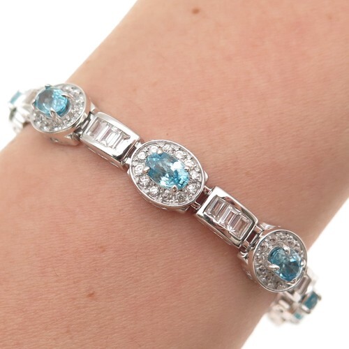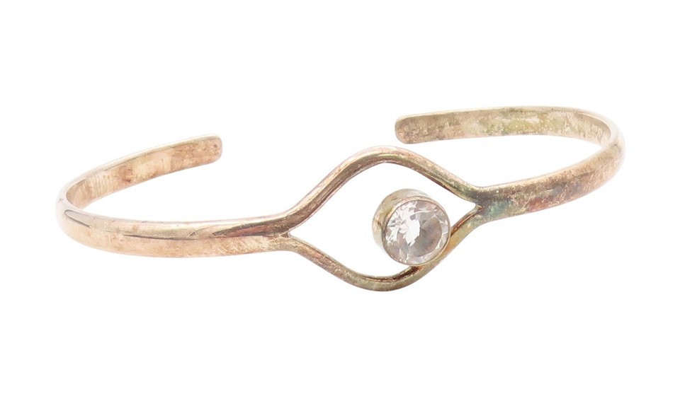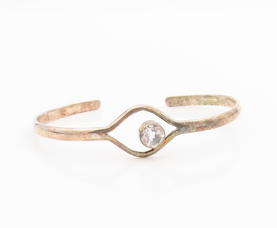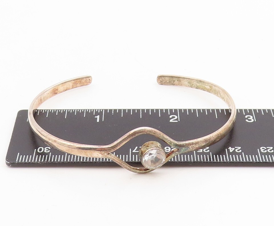 925 Sterling Silver Vintage Bracelet DEB GUYOT Topaz Minimalist Cuff BT11583