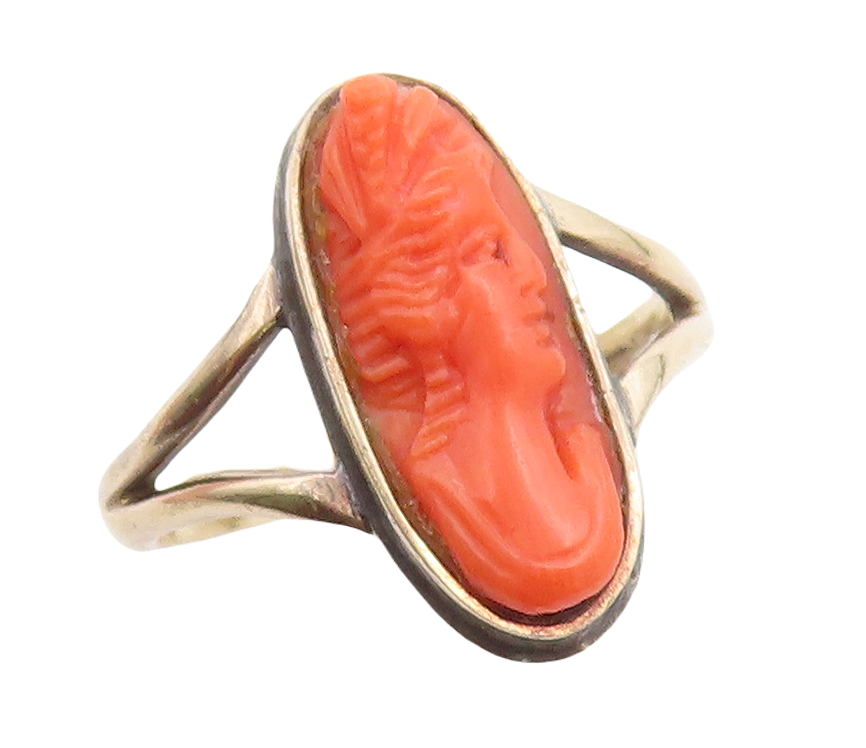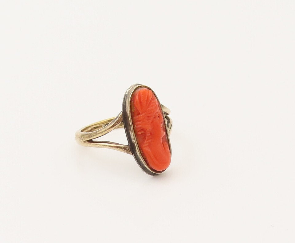 Authenticity Guarantee 18K GOLD Vintage Antique Royal Female Figure Carved ...