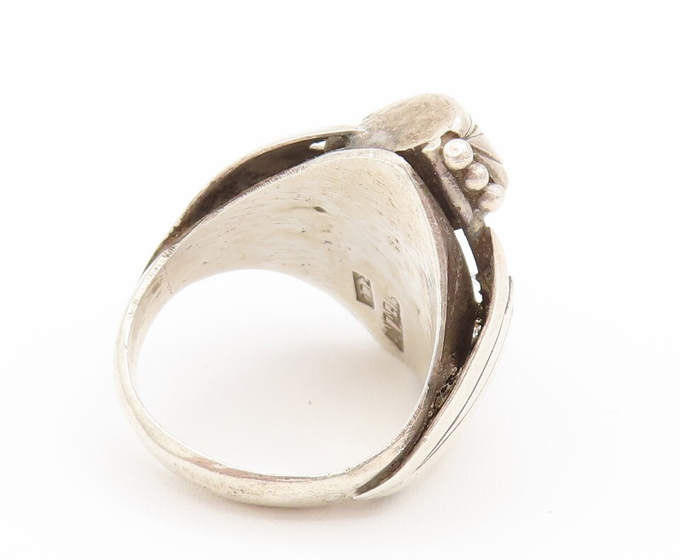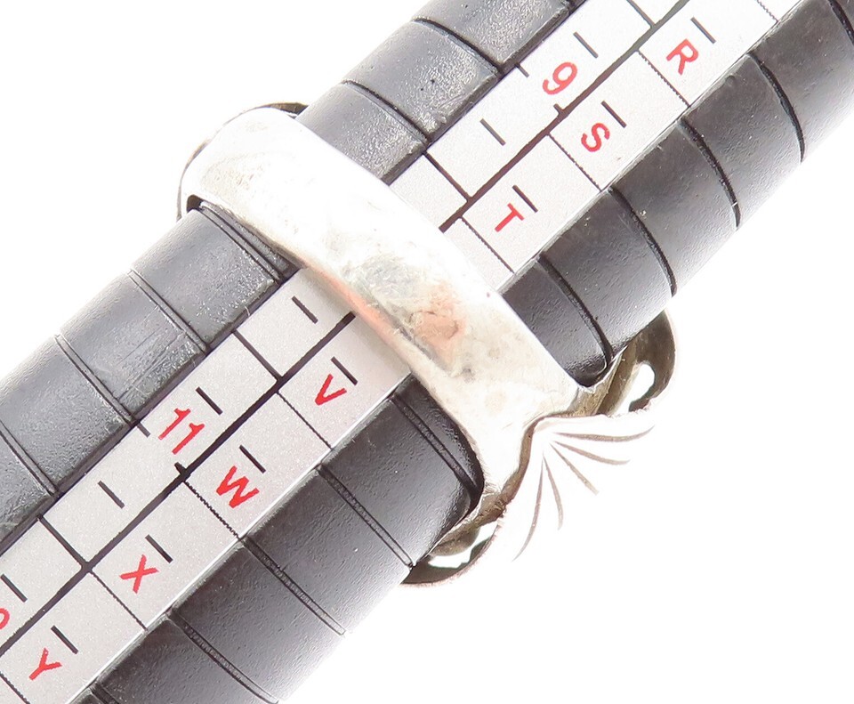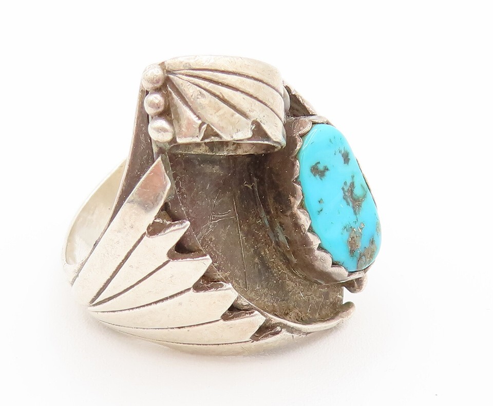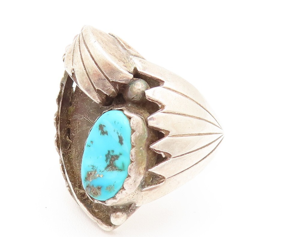 NAVAJO 925 Silver Vintage Modern Engraved Lines Turquoise Ring Sz 10 RG26170