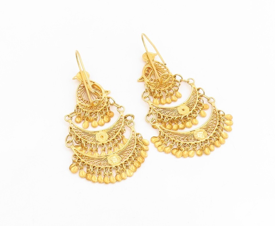 Authenticity Guarantee 18K GOLD Vintage Earrings Elegant Peacock Filigree Ch...
