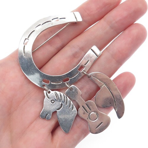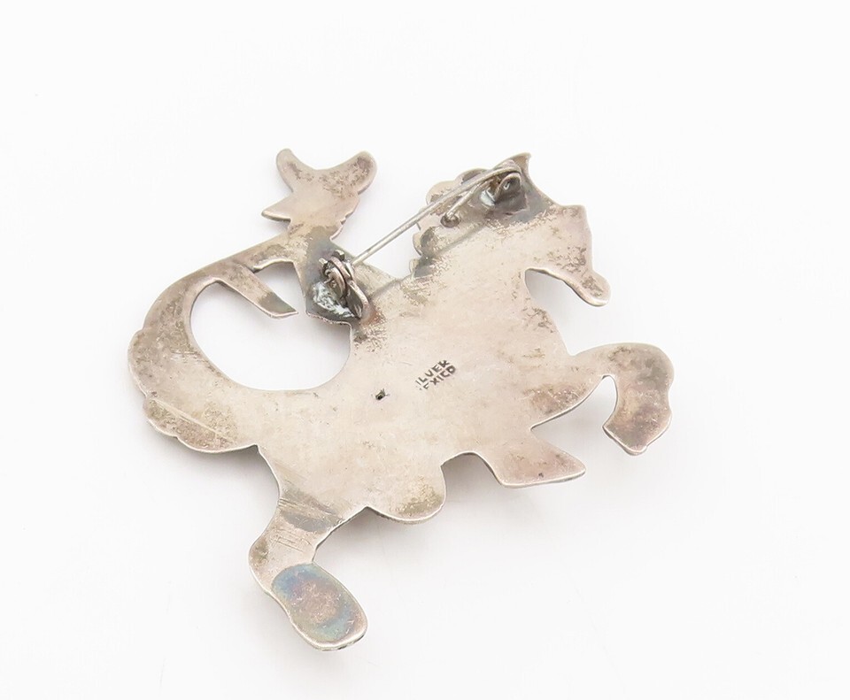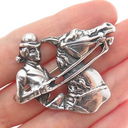 MEXICO 925 Silver Vintage Antique Jockey Riding Horse Brooch Pin BP10488