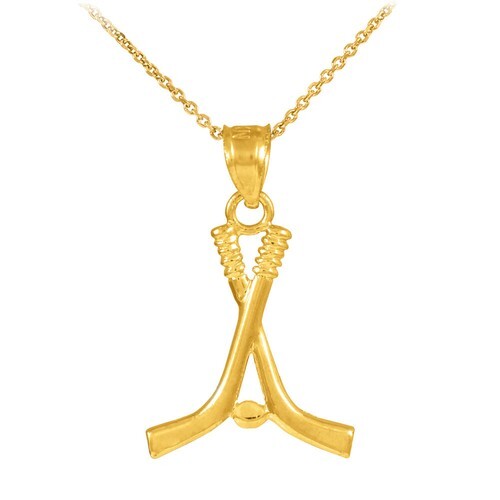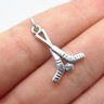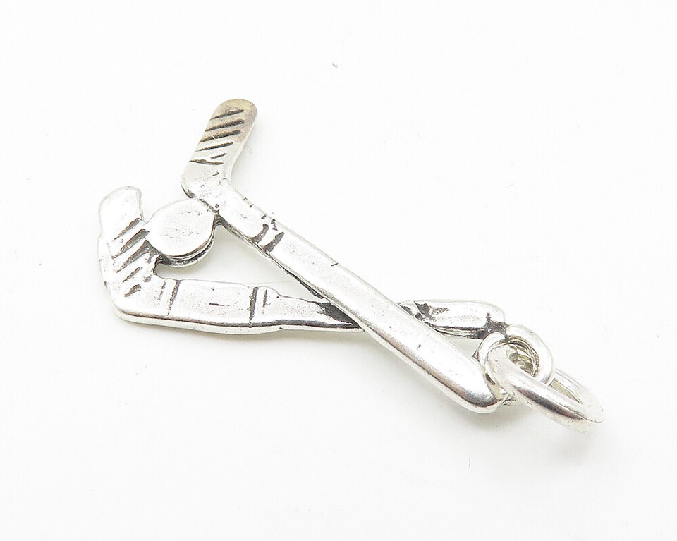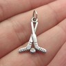 925 Sterling Silver Vintage Petite Shiny Hockey Sticks & Puck Pendant PT8448