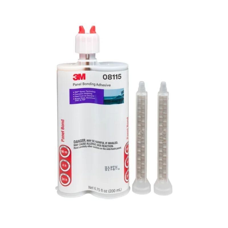 This kit includes(2) 3M 08115 panel bonding adhesive, 200mL manual applicator gun and 9 mixing nozzles. Manual applicator supports 200ml cartridges. Panel bonding adhesive seals plastic and metal substrates including cold roll steel, aluminum, SMC and FRP(traditional fiberglass). Ideal for body shops, DIY, hobbyists, bonding quarter panels, roofs skins, van sides, utility vehicle sides and door skins - anywhere that requires a lasting fit for outer body money-saving replacement for many collision repair jobs that have traditionally required welding or riveting. Many interior or other adjacent parts that must be removed to avoid damage from welding can remain installed when using the applicator gun and adhesive.