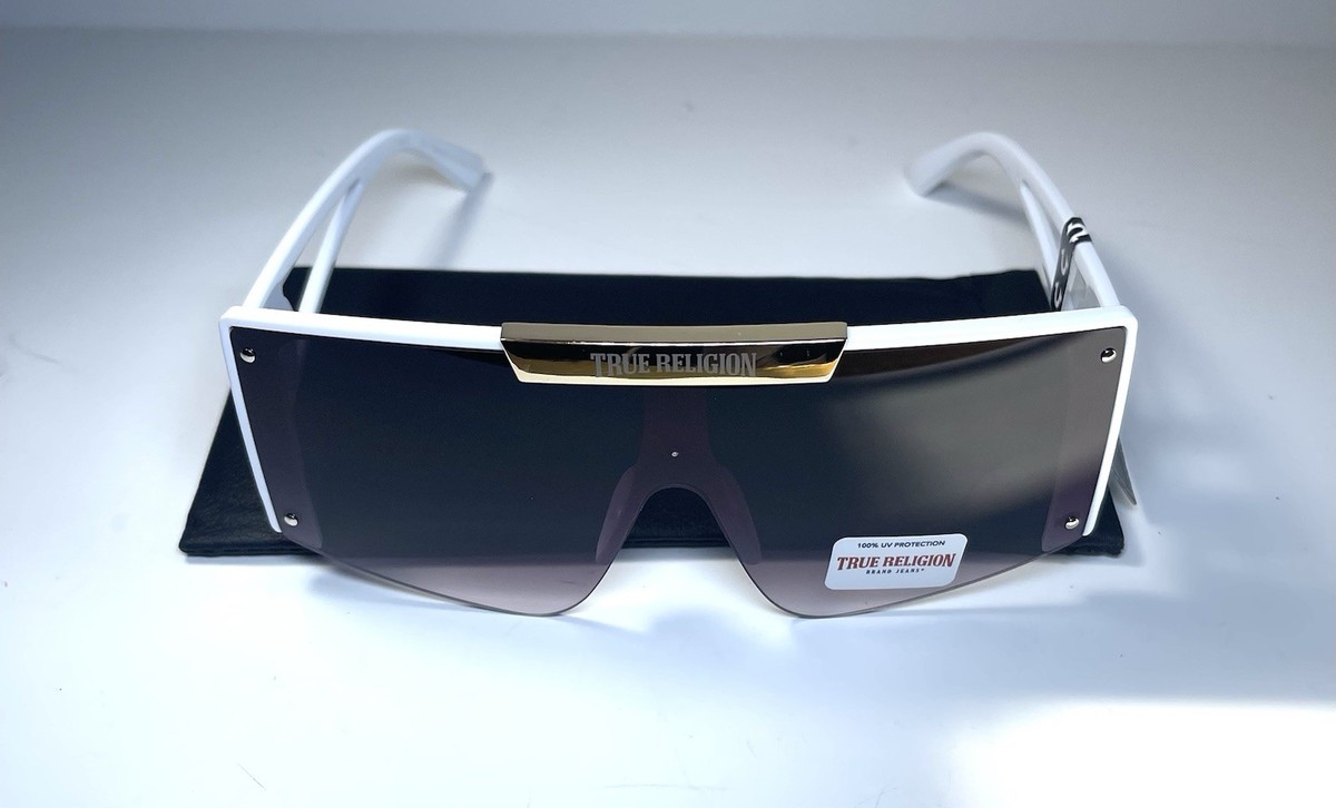 NEW TRUE RELIGION White Oversized Shield TR56852XK Sunglasses + Case