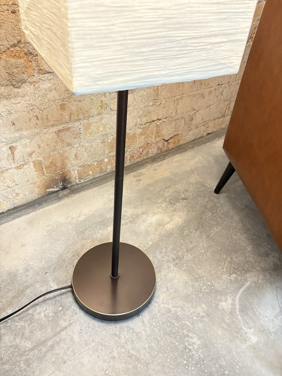 Kenroy Home, Netherlands, Scandinavian minimalist, oil rubbed bronze, 62-1/2 inch floor lamp with 8 inch square, crinkle paper shade.