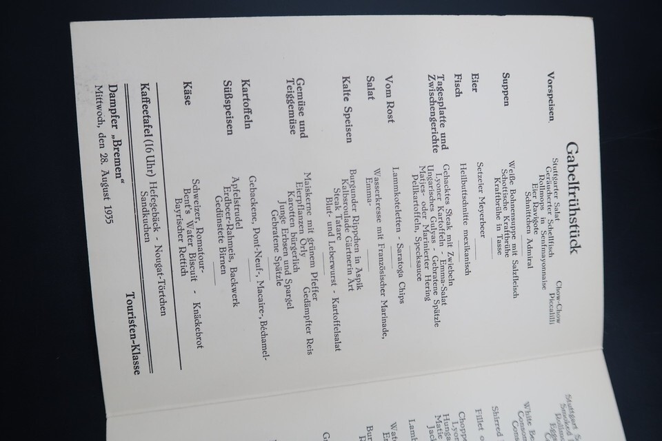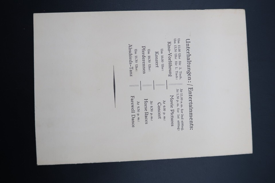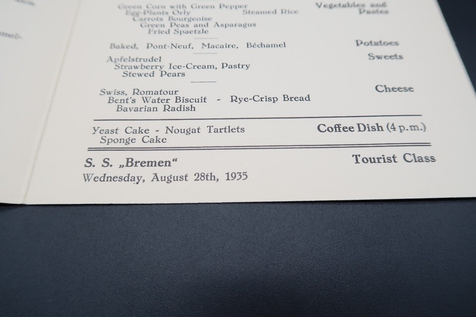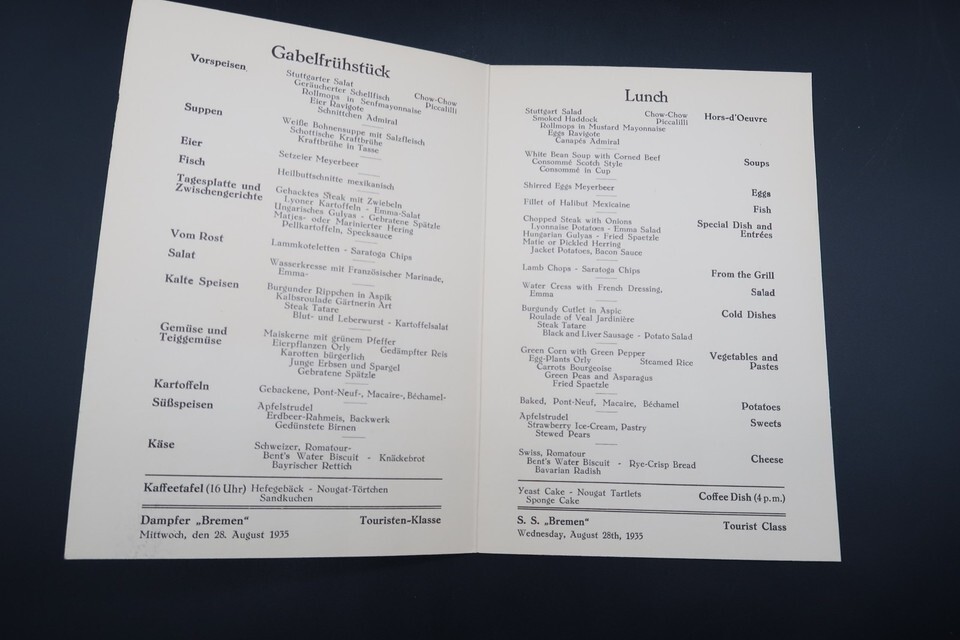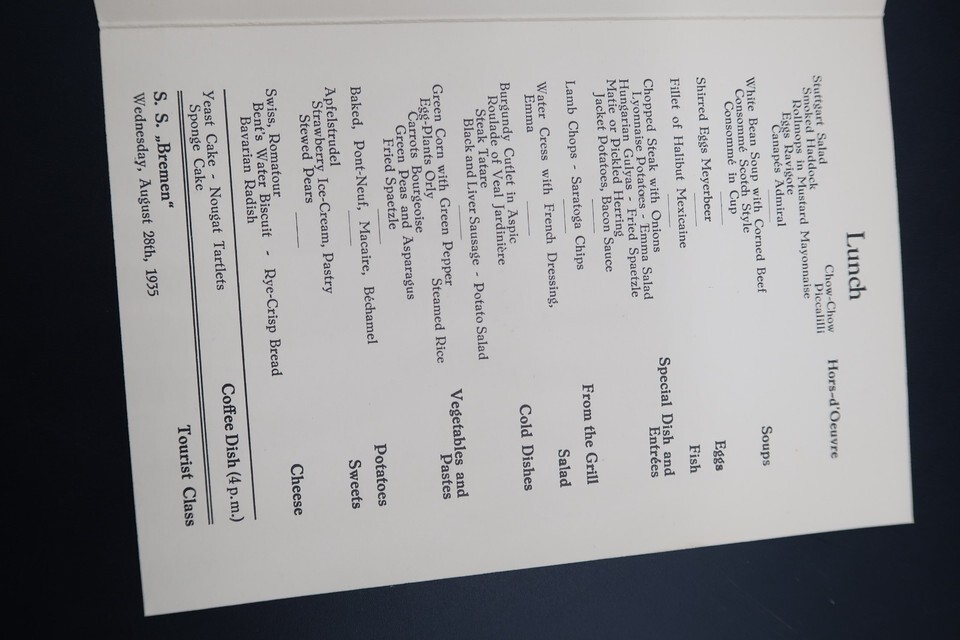 Vtg SS Bremen North German Lloyd Tourist Class Lunch Menu August 28, 1935