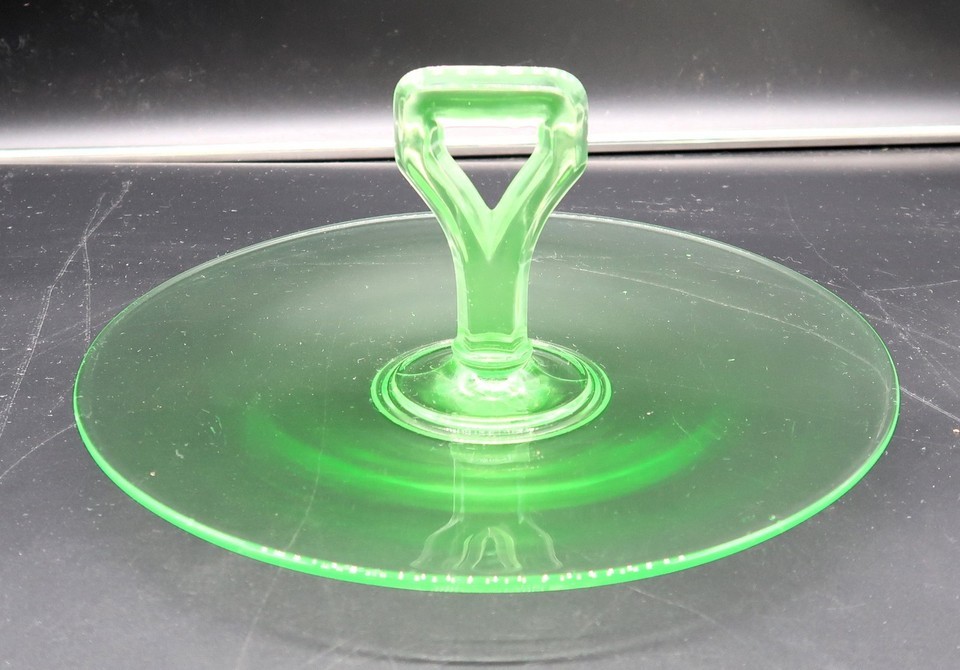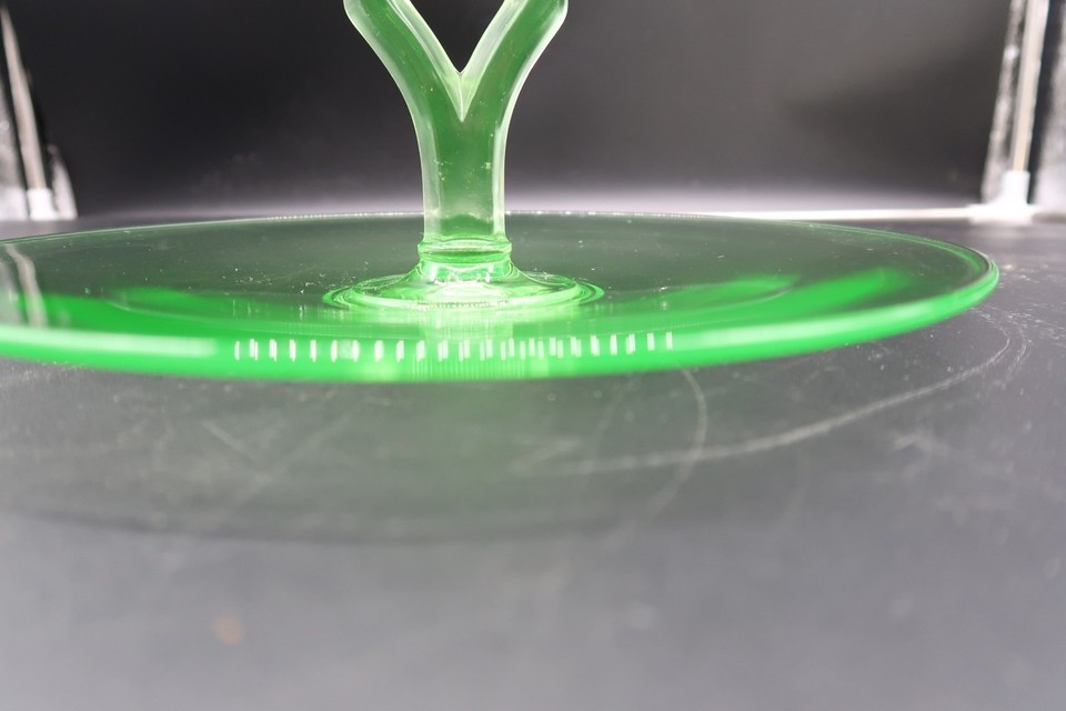 Vtg 10" Green Uranium Depression Glass Dish Hors d'oeuvres Appetizer Halloween