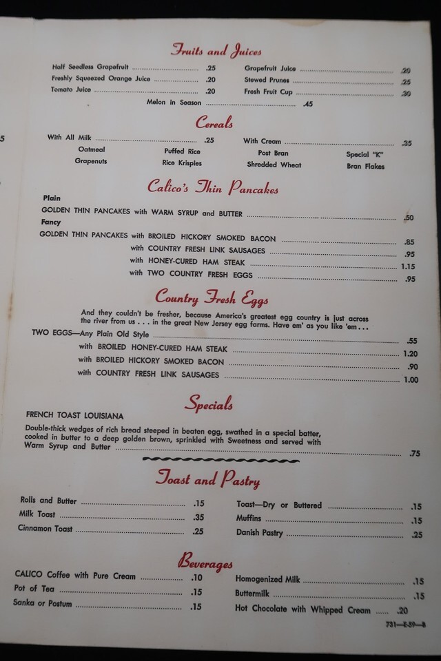Vtg Calico Kitchen Breakfast Menu 50's and similar items