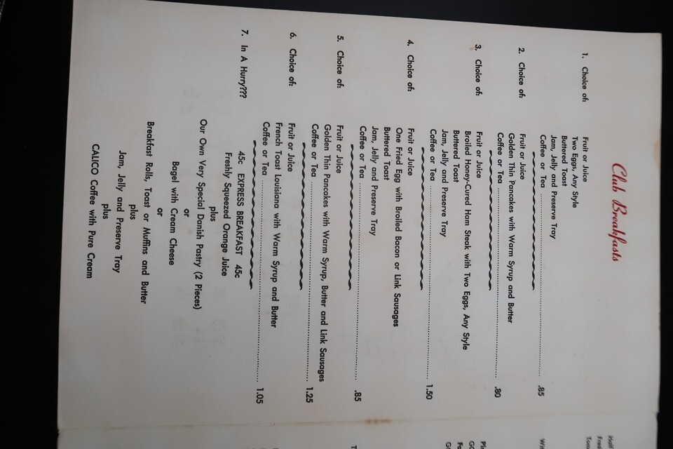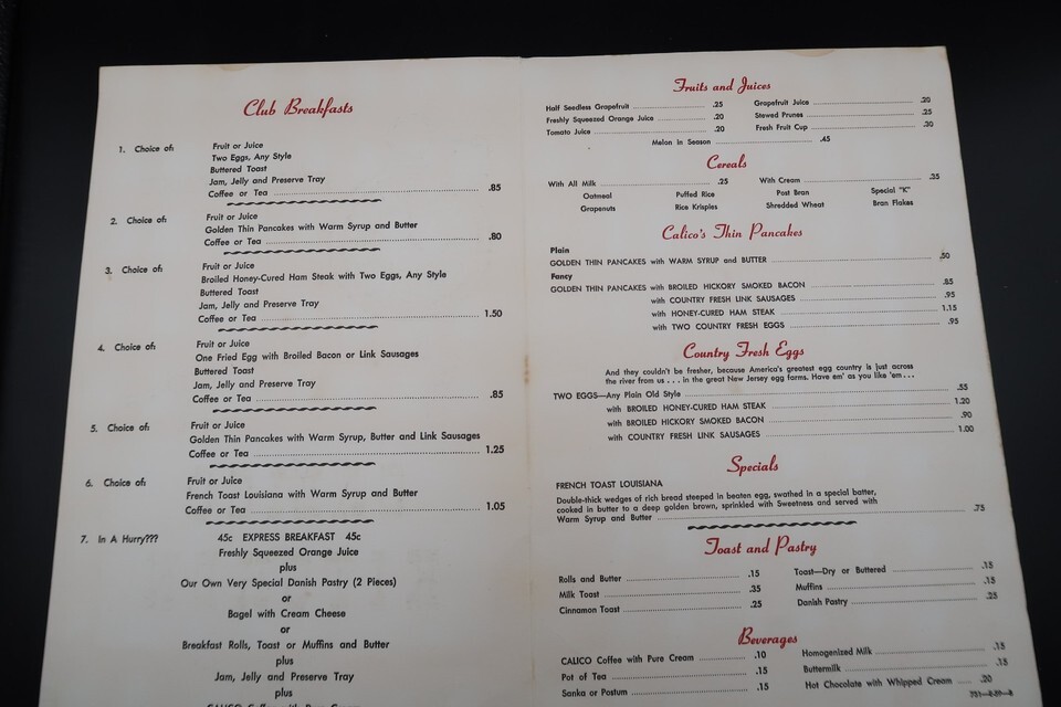 Vtg Calico Kitchen Breakfast Menu 50's Restaurant Ephemera Plaid Check Unique