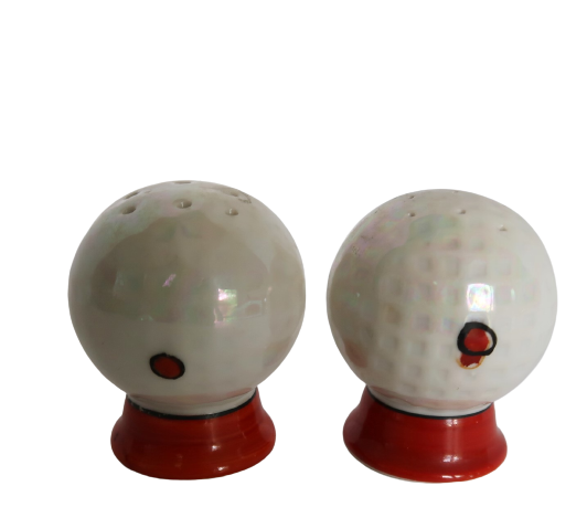 Fun vintage ceramic golf ball salt & pepper shakers made in Japan